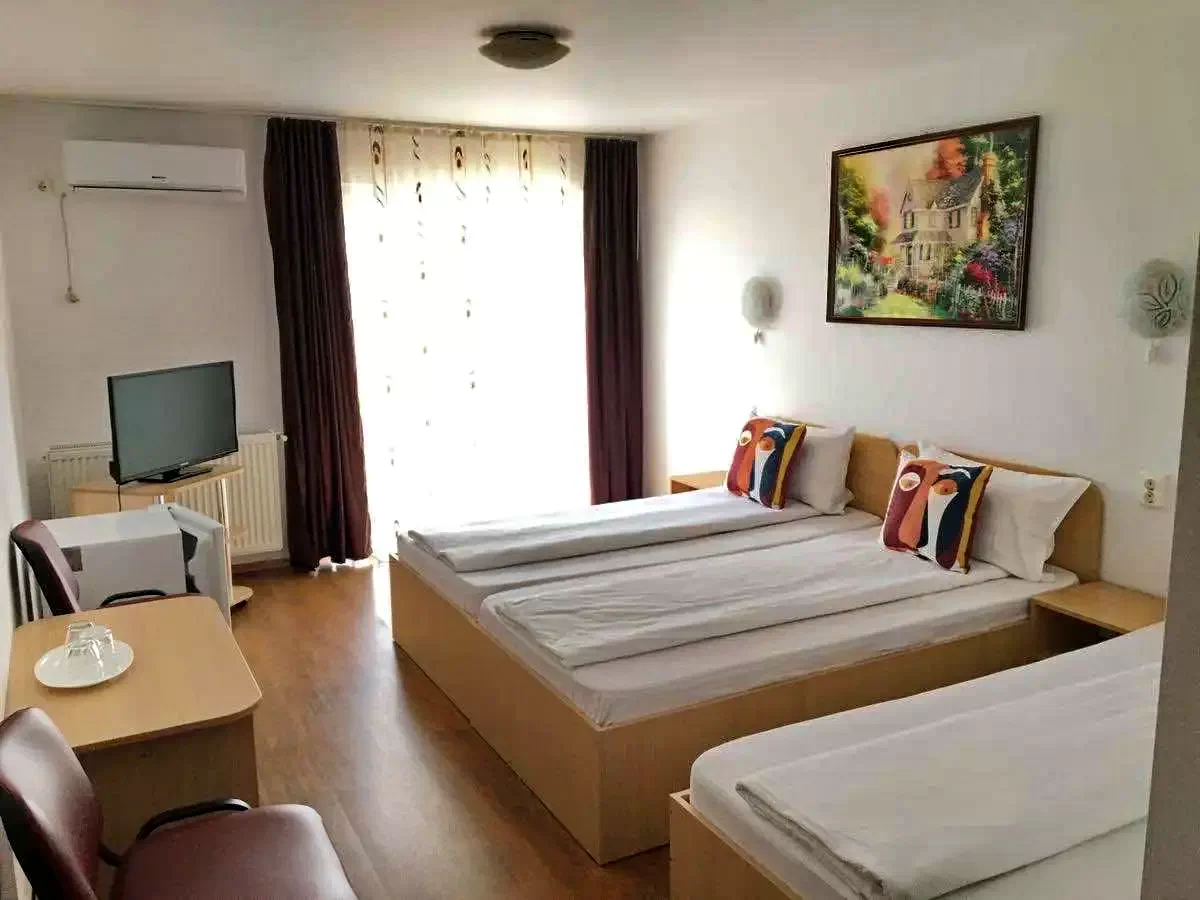 - Oferă cazare cu aer condiționat in camere cu doua si trei paturi si acces gratuit la internet. Va pune la dispoziție 7 camere triple si 8 camere twin, fiecare dotata cu birou, dulap, frigider, baie proprie, TV cu ecran plat + Cablu, Internet Wi-Fi.