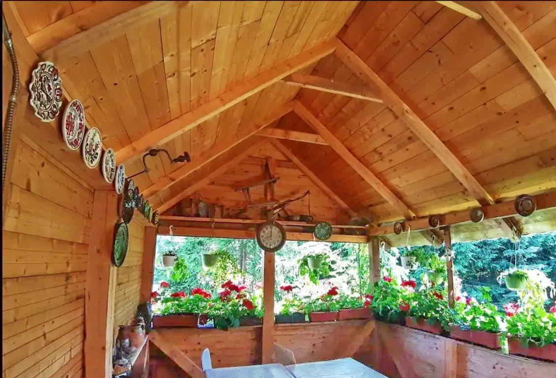 - Este o super cabana de munte, intima si primitoare, cu interioarele frumos decorate cu obiecte traditionale din zona: strachini pictate, vase rustice, o roata de tors, coarne de cerb.