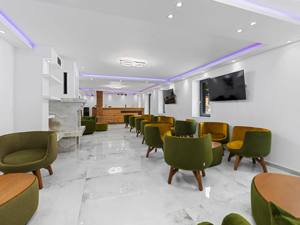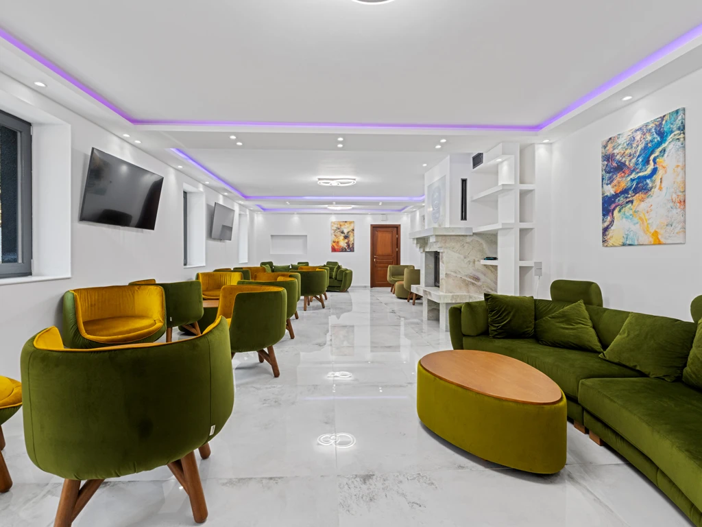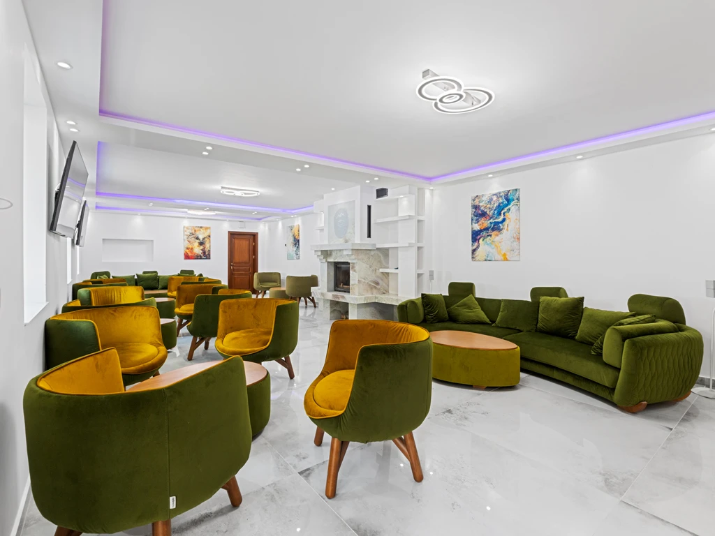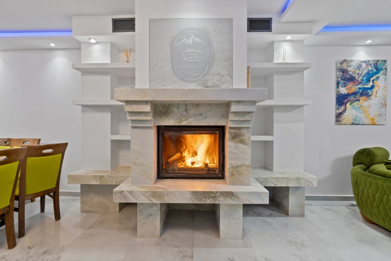 Living spatios cu semineu, ideal pentru socializare si evenimente tematice.