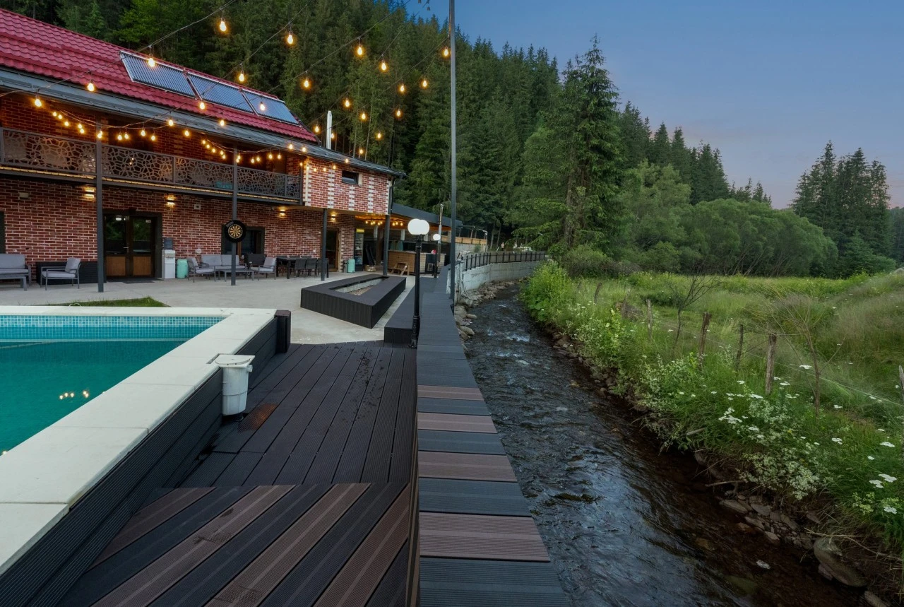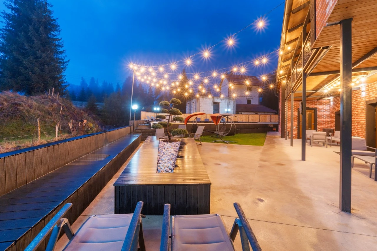 Suprafata camerelor: 20–30 m², cu vedere spre munti, parau sau piscina.