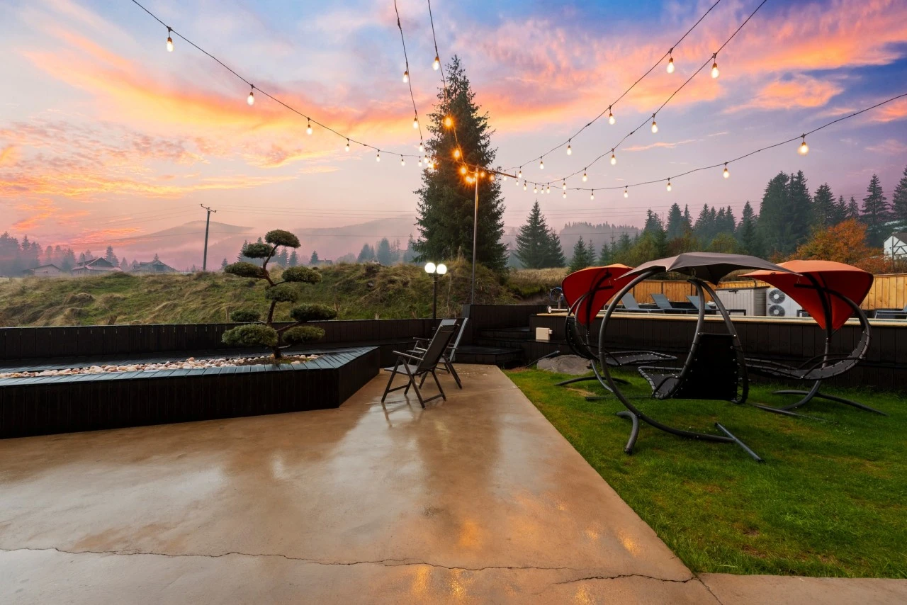 Terasa si gradina cu para, pentru relaxare in aer liber.