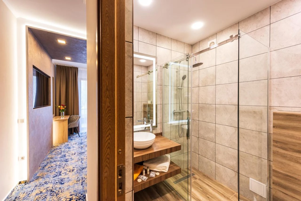 - Hotelul este conectat direct cu centrul de tratament printr-un coridor acoperit, facilitând accesul rapid și comod la terapii.