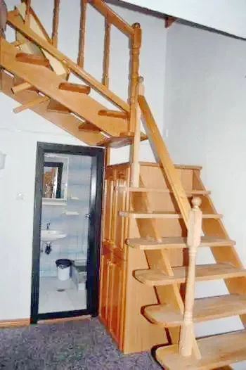 - la primul etaj camera de zi (2 locuri), baie cu dus