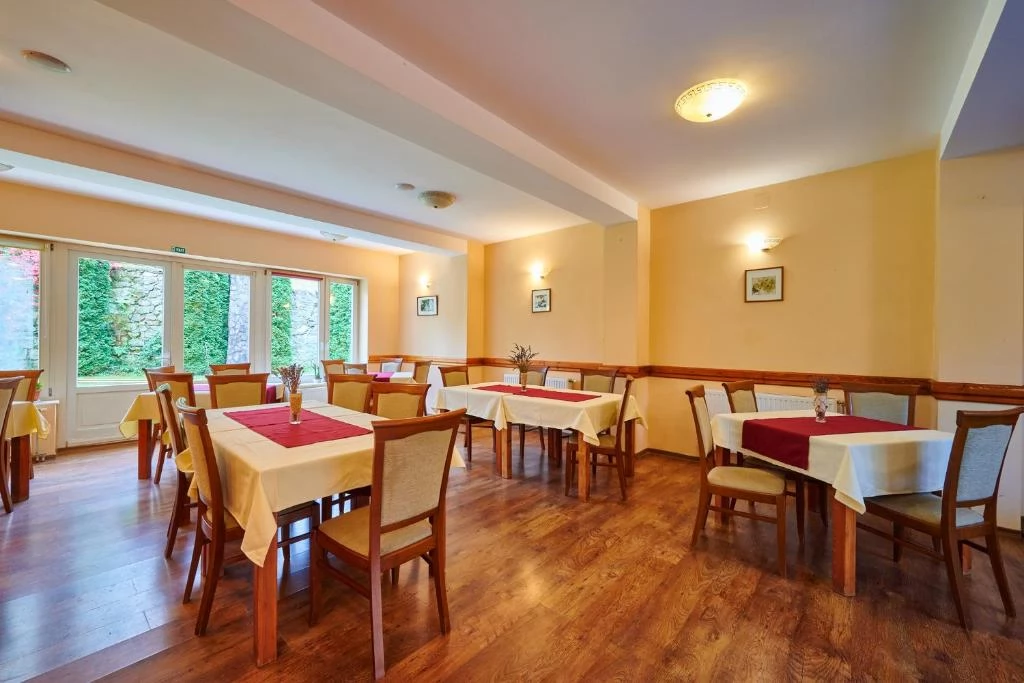 - Pensiunea dispune de un restaurant cu 50 de locuri, care servește preparate tradiționale din bucătăria ardelenească, realizate din ingrediente locale, însoțite de o gamă variată de băuturi, inclusiv apă minerală din Tușnad, vinuri, bere și băuturi spirtoase.