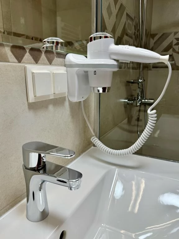 - Camerele sunt mobilate elegant, dotate cu baie proprie cu duș sau cadă de colț, unele incluzând cadă cu hidromasaj, televizor cu cablu și minibar.