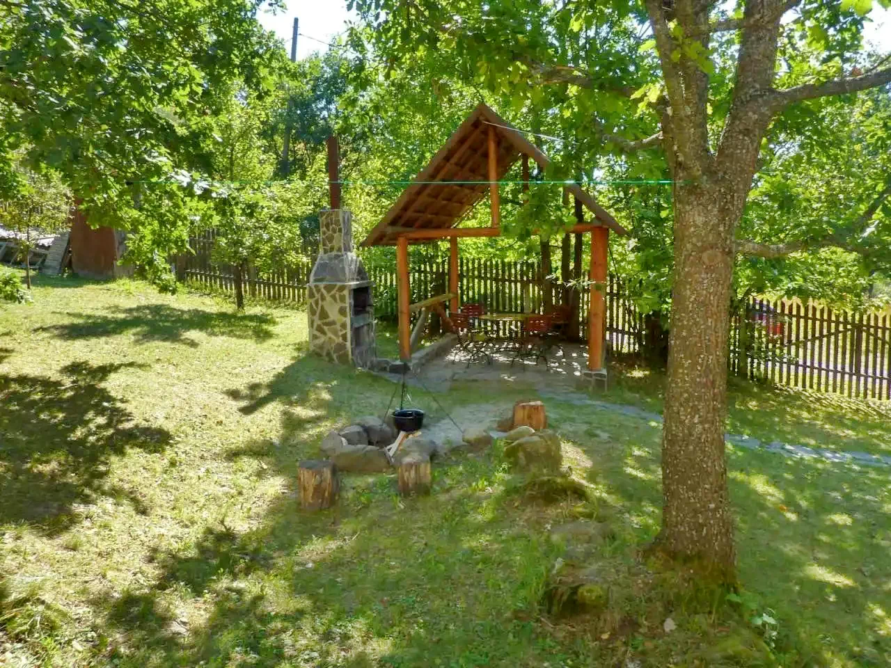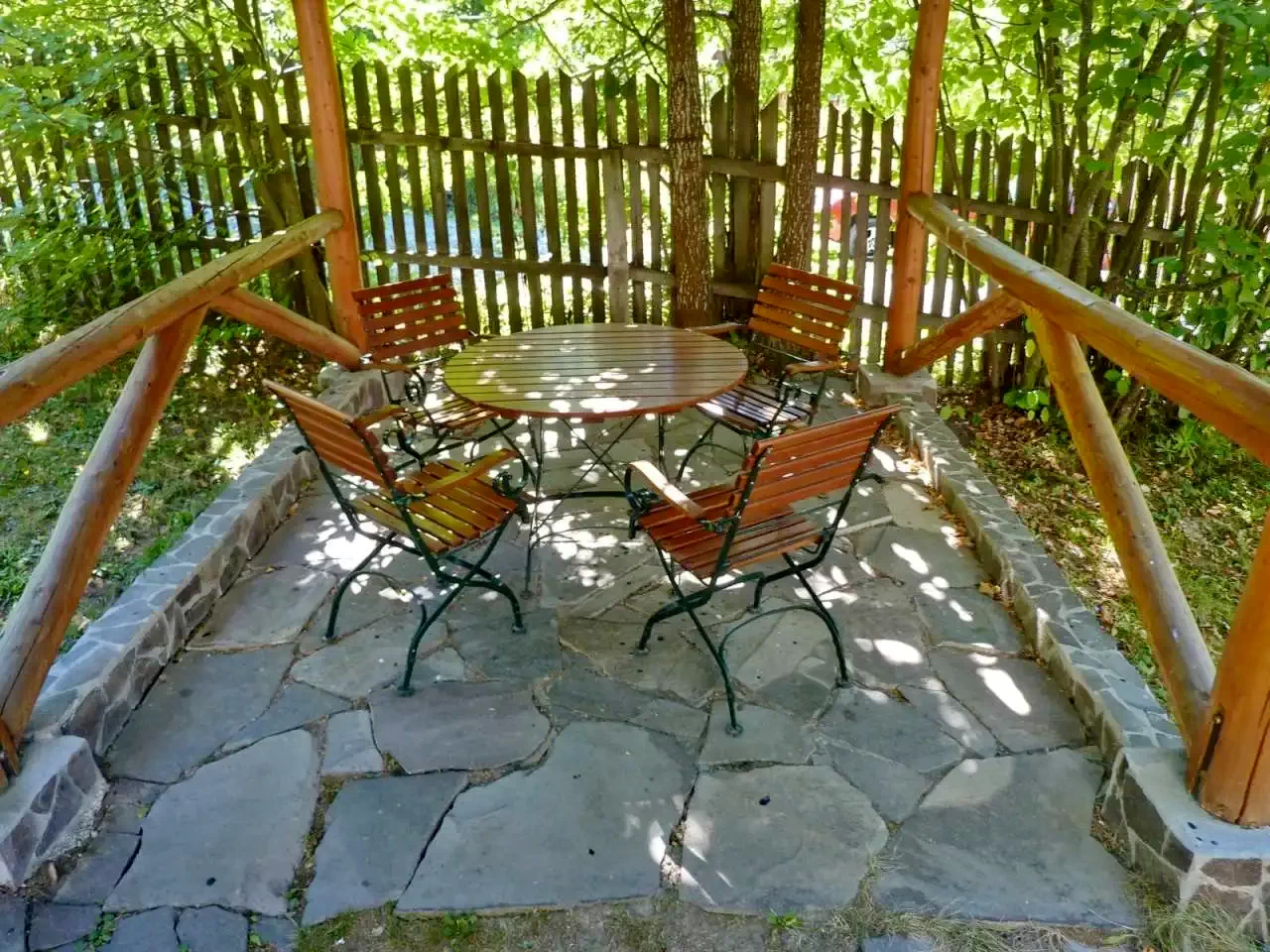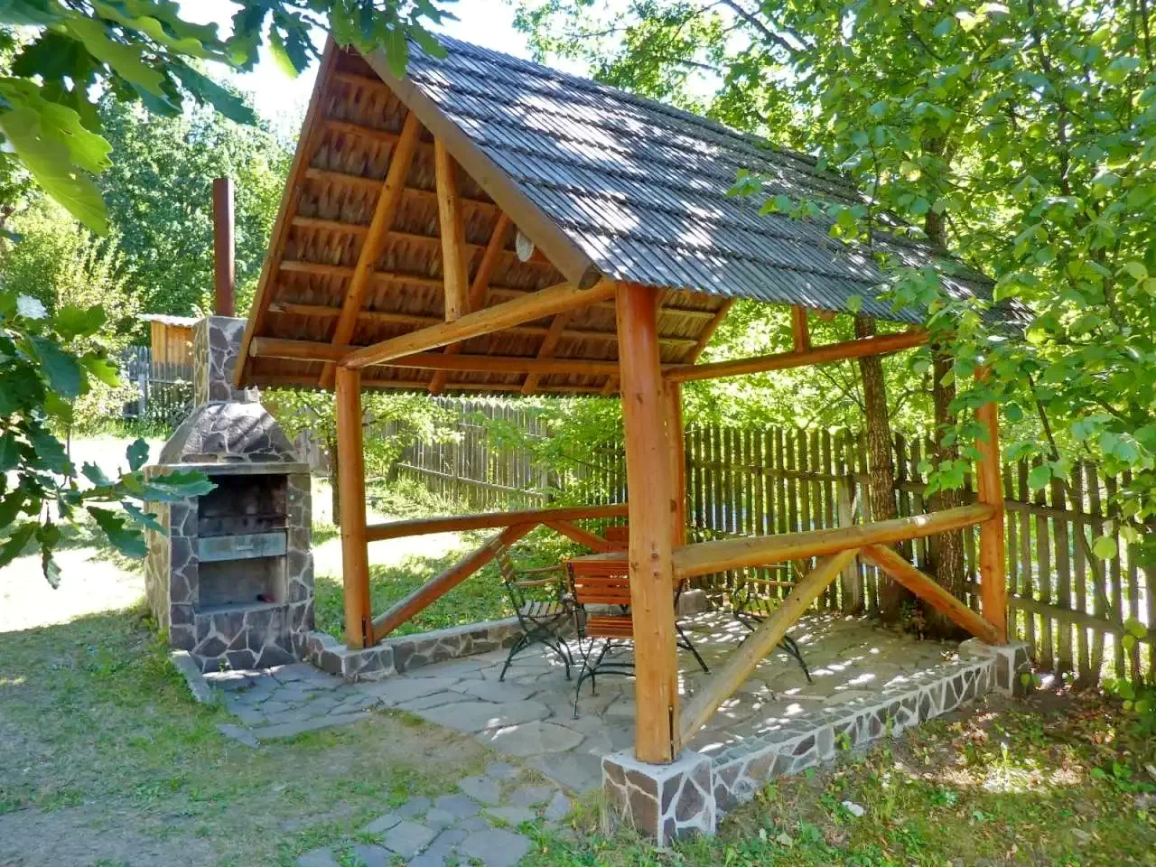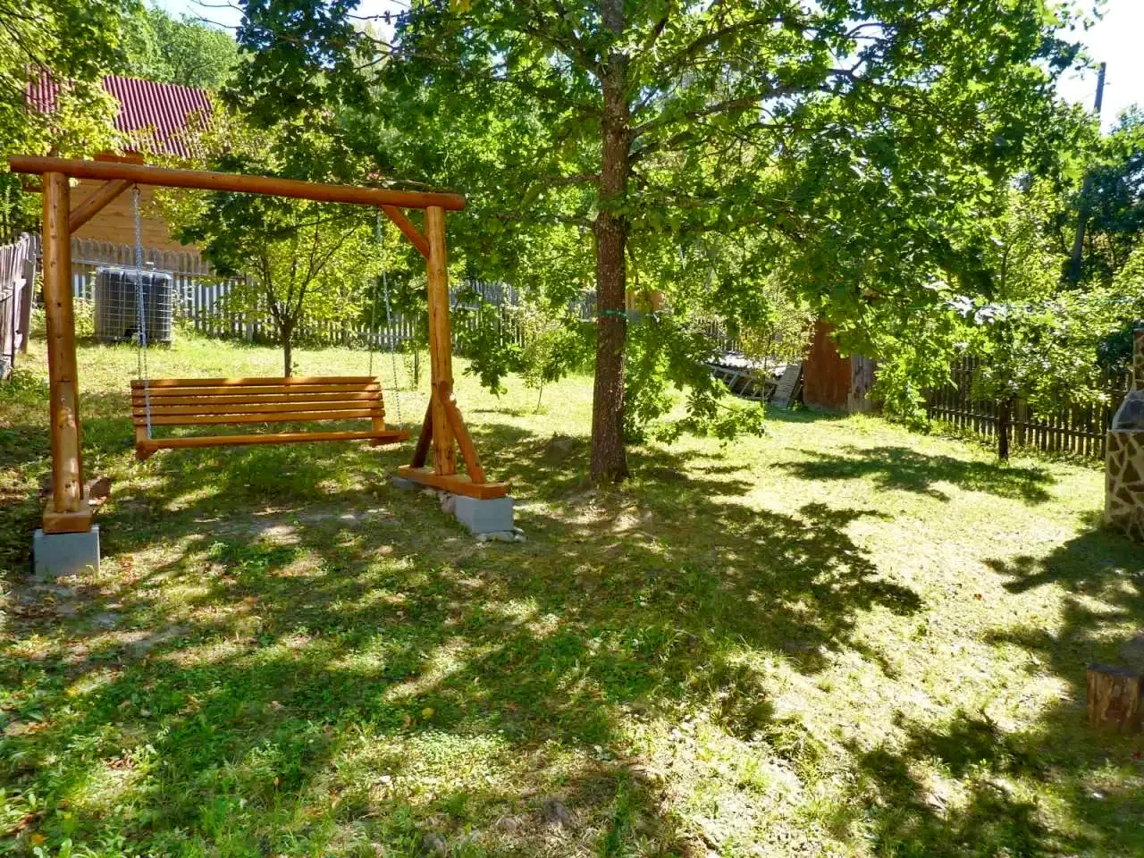 Curtea de 750 m² a cabanei oferă diverse posibilități de relaxare și distracție pentru toate vârstele.