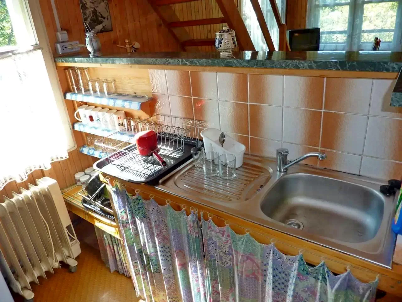 - Cabana dispune de o bucătărie complet utilată, perfectă pentru oaspeții care preferă să gătească singuri, echipată cu aragaz, frigider, cuptor cu microunde, prăjitor de pâine, filtru de cafea, oală sub presiune, oale, tacâmuri și veselă.
