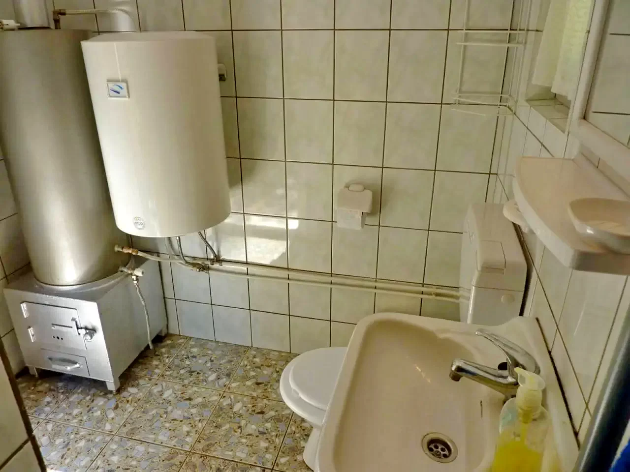 - Încălzire: sobă din fontă, radiatoare electrice.