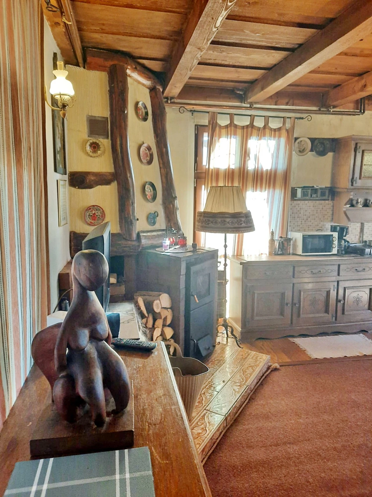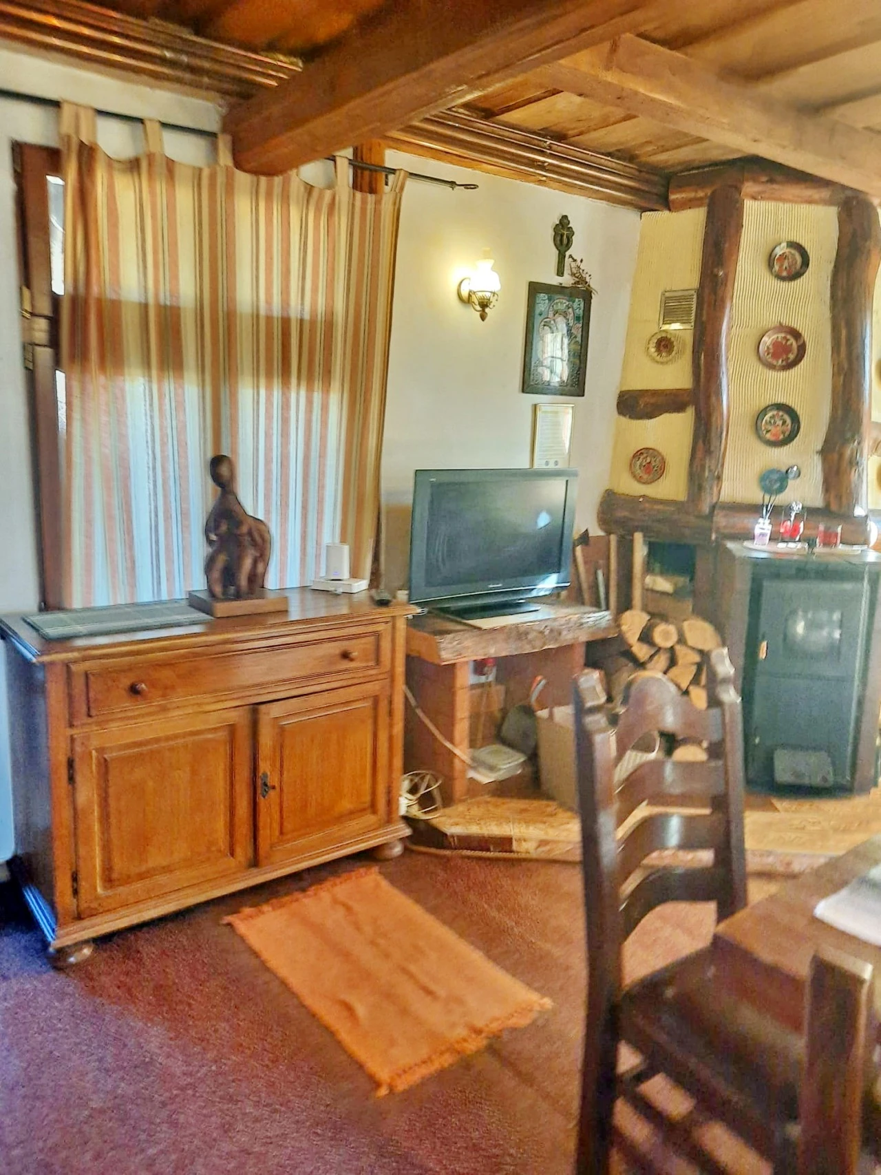 Casa de vacanta spatioasa este dotata cu 7 camere, 5 bai, 1 living de 45 mp, semineu, tv satelit in fiecare camera, incalzire centrala