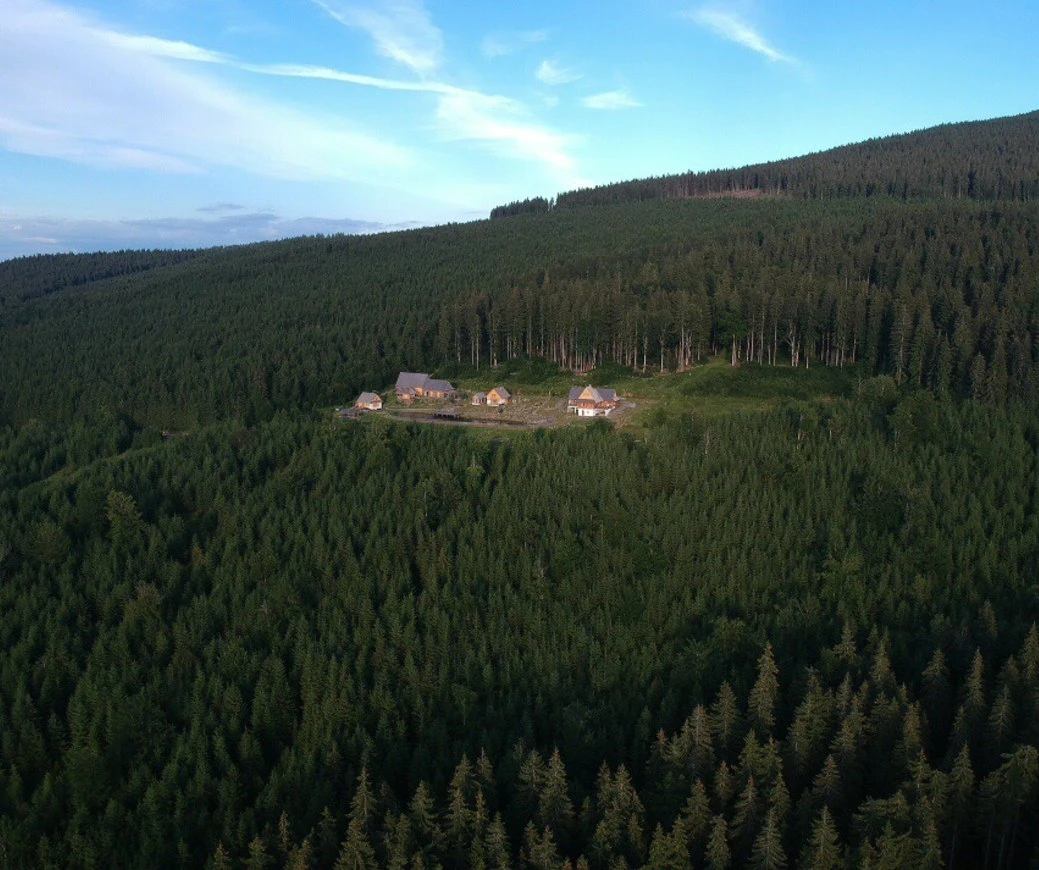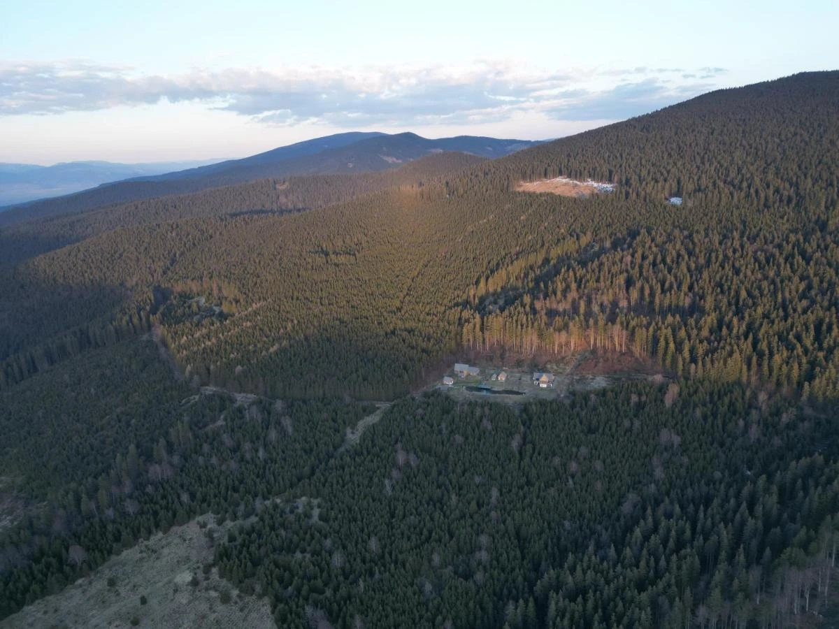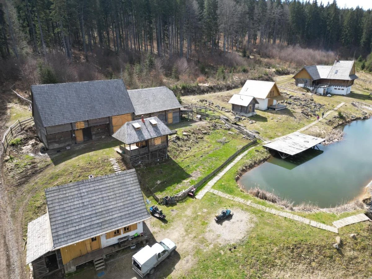 Cazare Borzont Cabana de Vacanță | La 1200m altitudine, în inima pădurii de brazi, cu ponton de yoga deasupra lacului cu păstrăvi; Wellness: ciubăr, saună; Bucătărie; Sală de mese; Terasă panoramică cu bucătărie și cuptor | 12 km Pârtia de schi Bucin