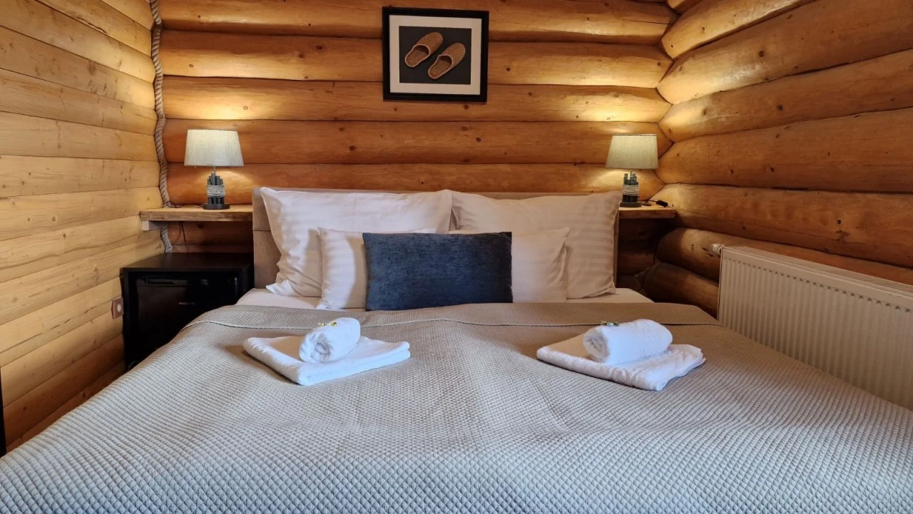 - Farmecul cladirii se datoreaza mai ales constructiei din busteni. Ofera experienta si armonia unica al mireasmei padurii, emanand un efect pozitiv familiar asupra dispozitiei bune ale oaspetilor.