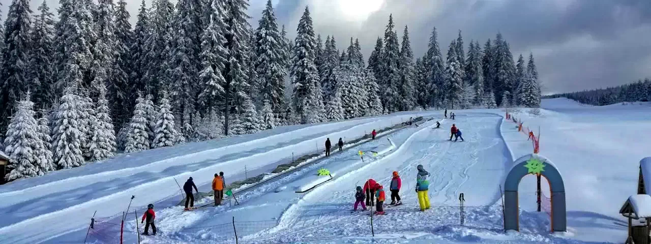 - Pârtiile una de 1200 m lungime si alta cu 400 m lungime nu sunt abrupte, sunt perfecte pentru schieri plăcute, cu o înclinare de 14%.