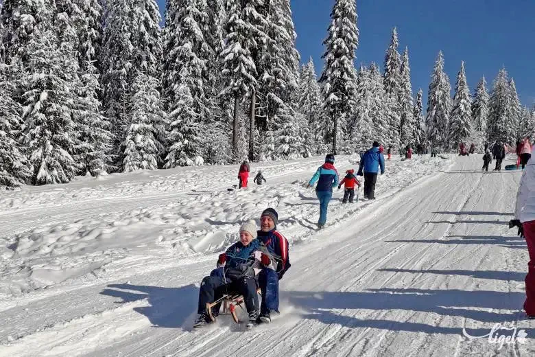 - Dificultatea pistei este mediu cu posibilitate de închiriere echipament pentru schi şi snowboard.