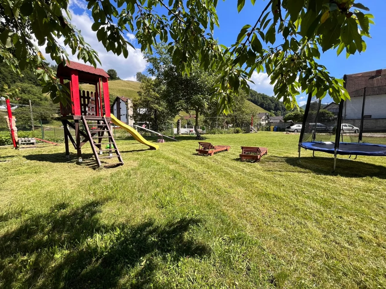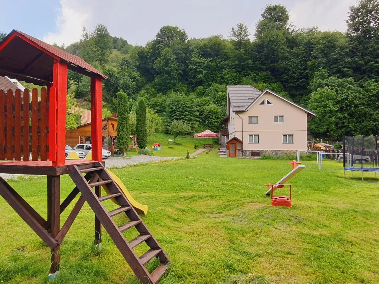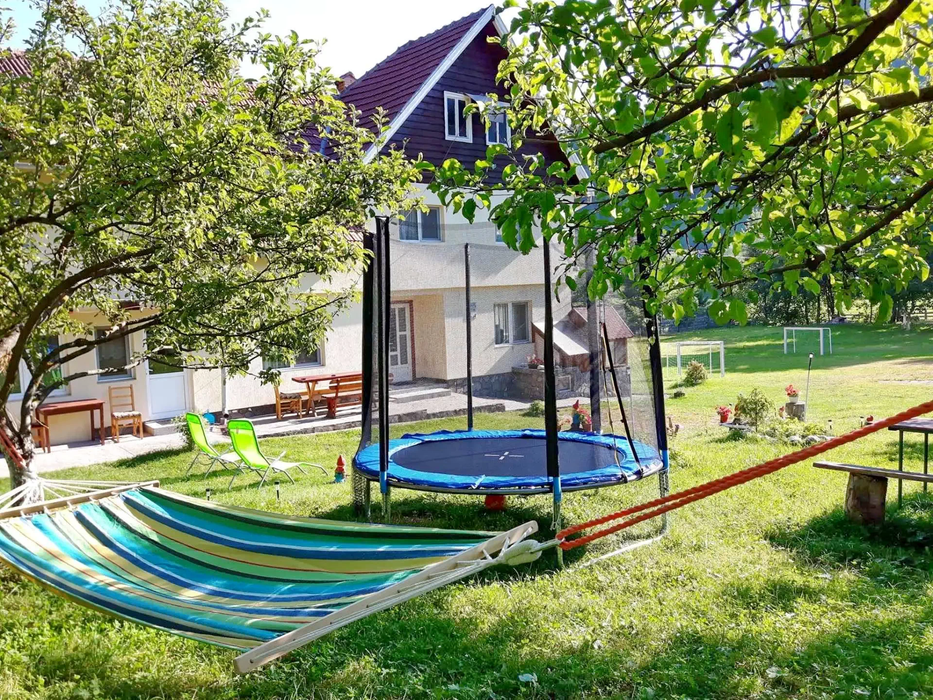 Curtea spațioasă a pensiunii oferă numeroase posibilități de recreere și divertisment.