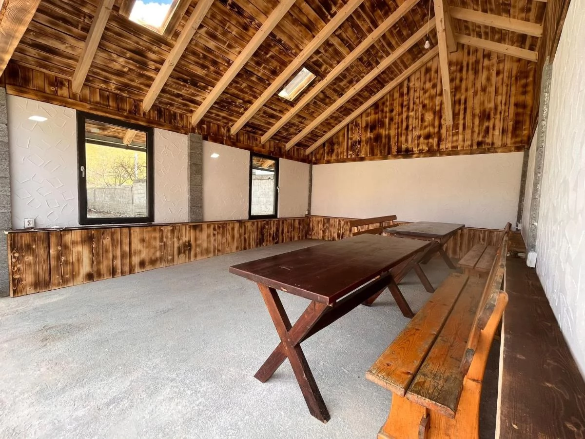 - Pensiunea este amplasată într-o cabană nou construită, în mijlocul unei curți de 3000 de metri pătrați, înconjurată de o grădină cu pomi fructiferi și o suprafață generoasă pentru activități recreative și joacă.