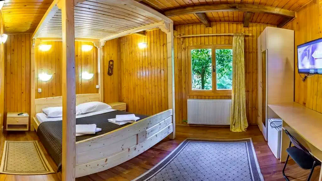 - 250 RON - Camera dubla confort (pentru 2 persoane cu pat matrimonial) cu vedere la gradina: