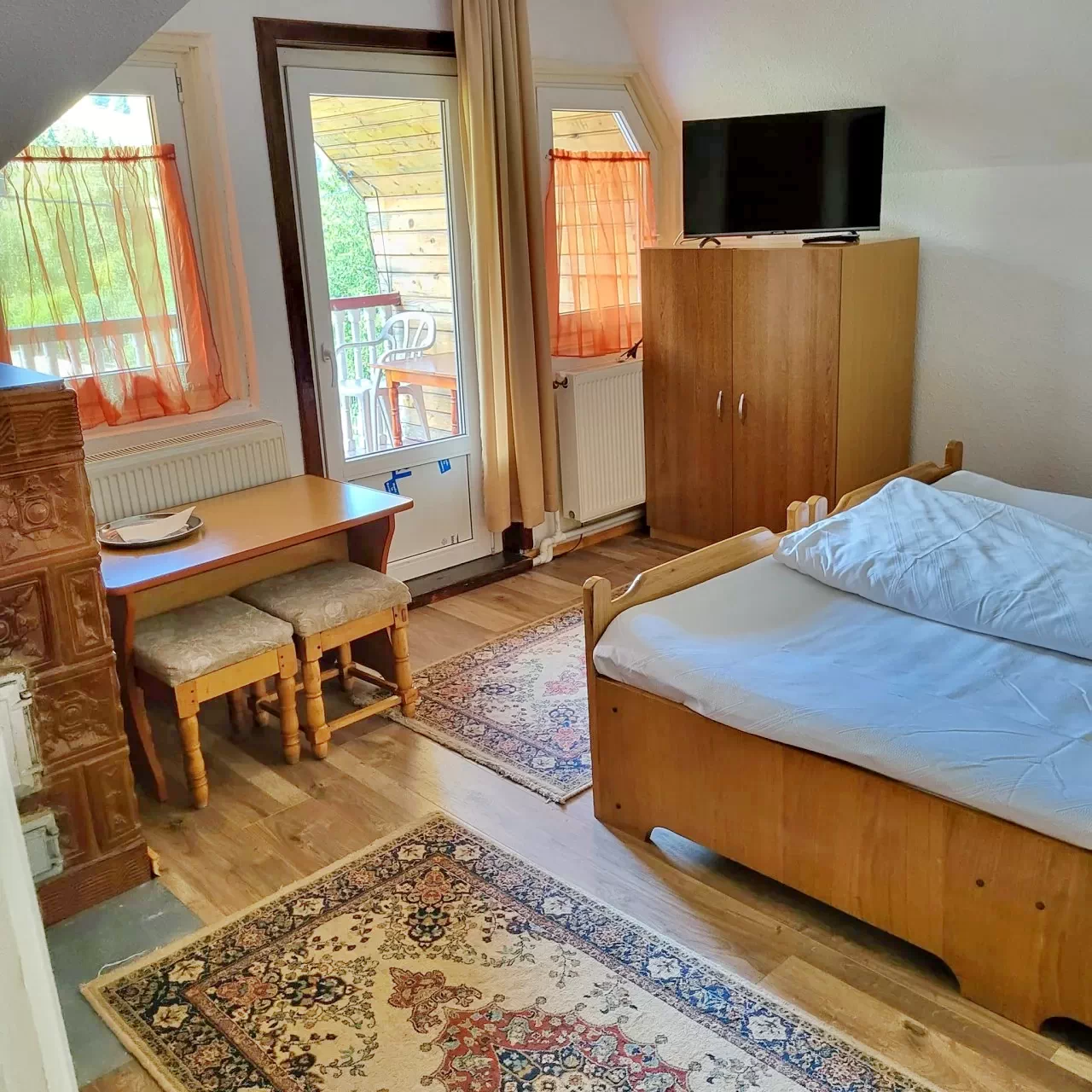 - Pensiunea ofera cazare confortabila in camere duble si triple, fiind potrivita atat pentru turisti individuali, cat si pentru familii, grupuri de prieteni sau grupuri organizate de mari dimensiuni.