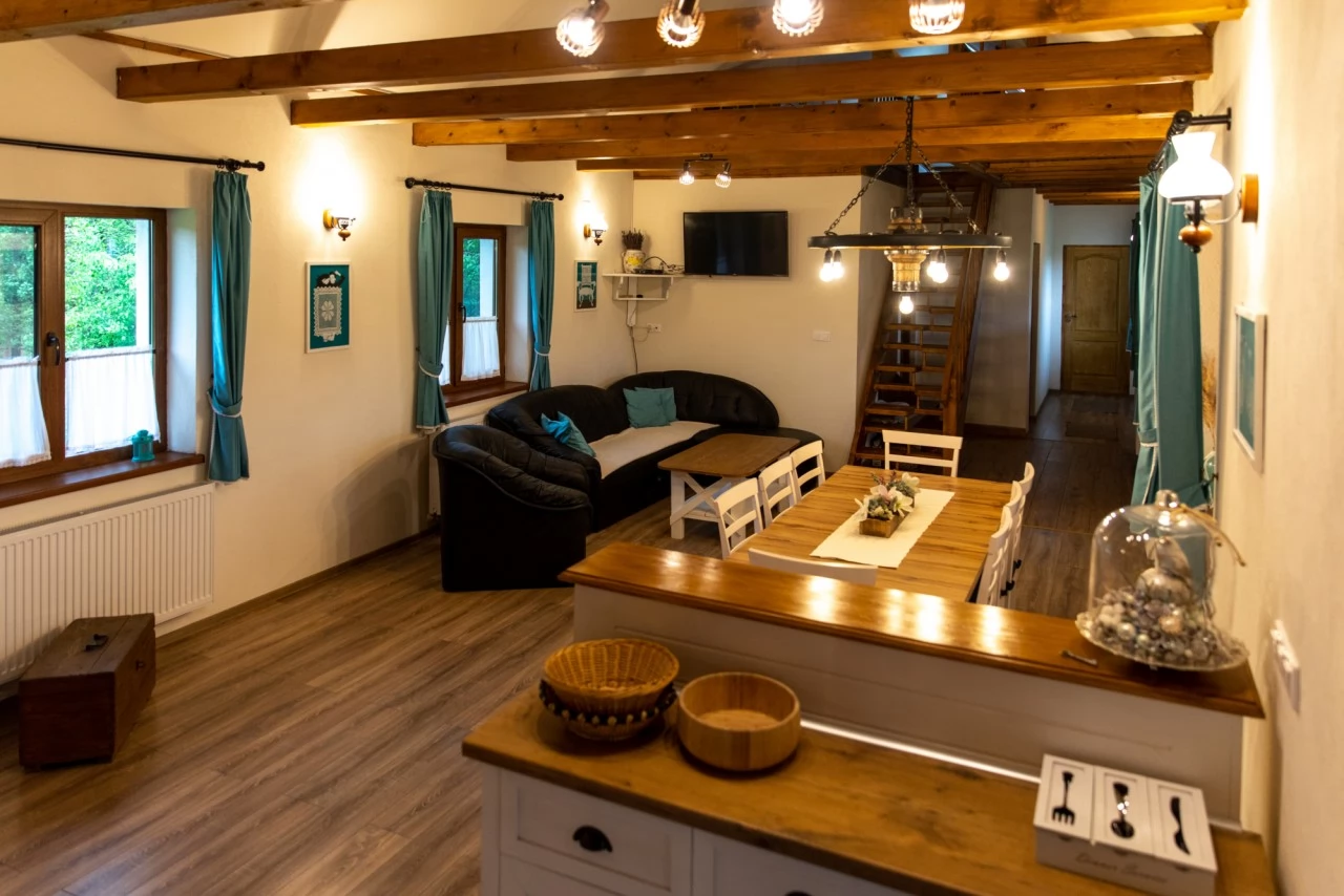 Cabana oferă cazare într-un mediu verde pitoresc pentru cupluri, familii sau grupuri mai mari de prieteni în 4 camere spatioase, dotate cu TV, mașină de spălat și 2 băi cu cadă hidromasaj.