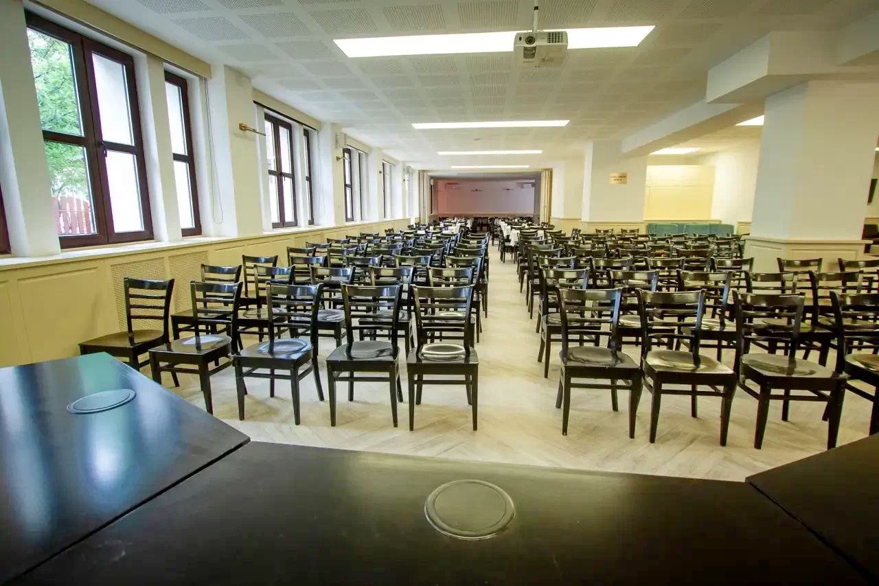 - 4 săli de conferințe moderne (Sala Festivă, Sala Elvețiană, Sala Americană, Sala Canadiană) echipate cu sonorizare, flipchart, videoproiector și sistem de traducere simultană