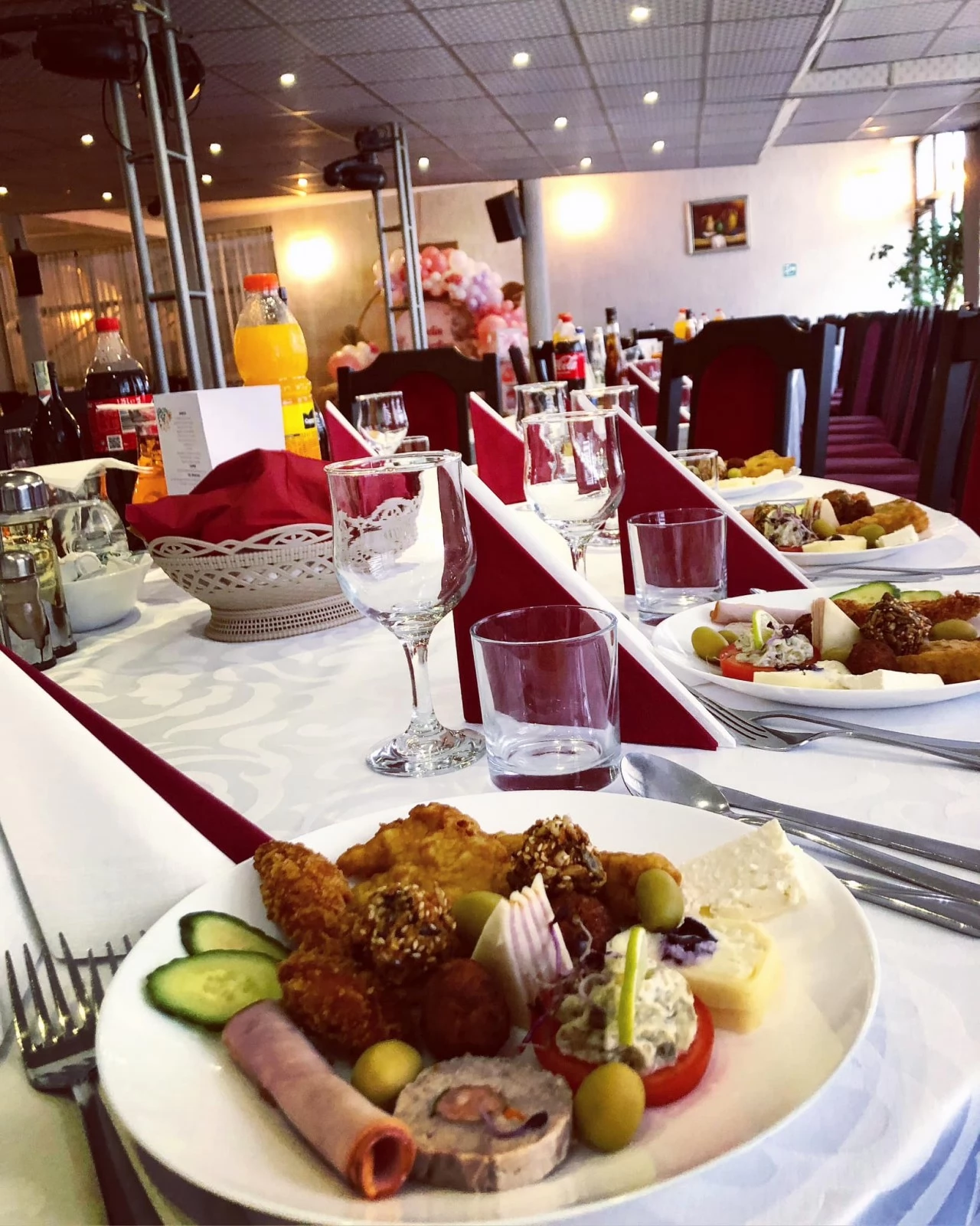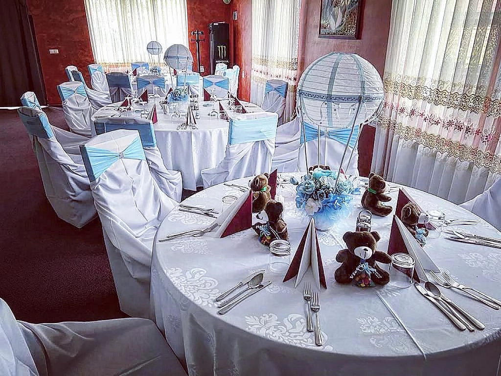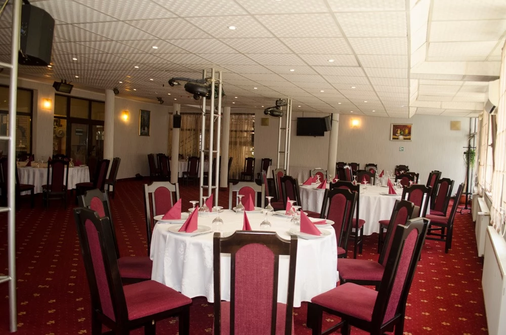 Dispune de o sală superba de evenimente cu o capacitate de 400 persoane, ideală pentru nunţi, botezuri, aniversări și alte evenimente private și corporative.