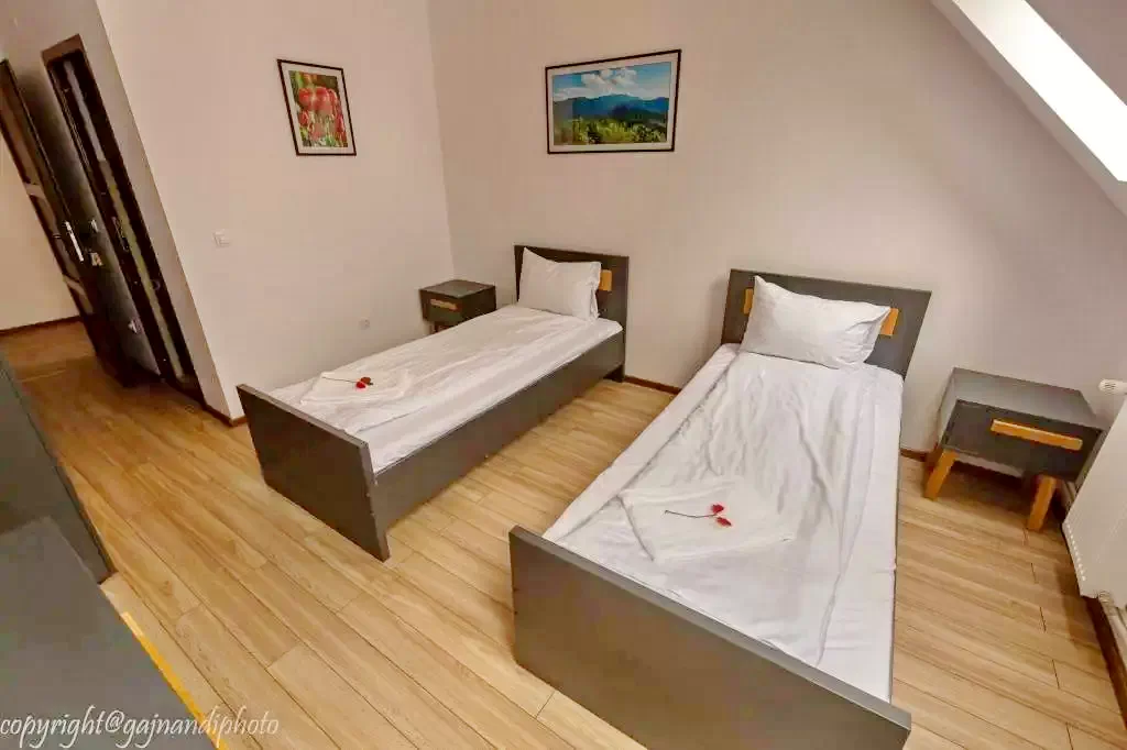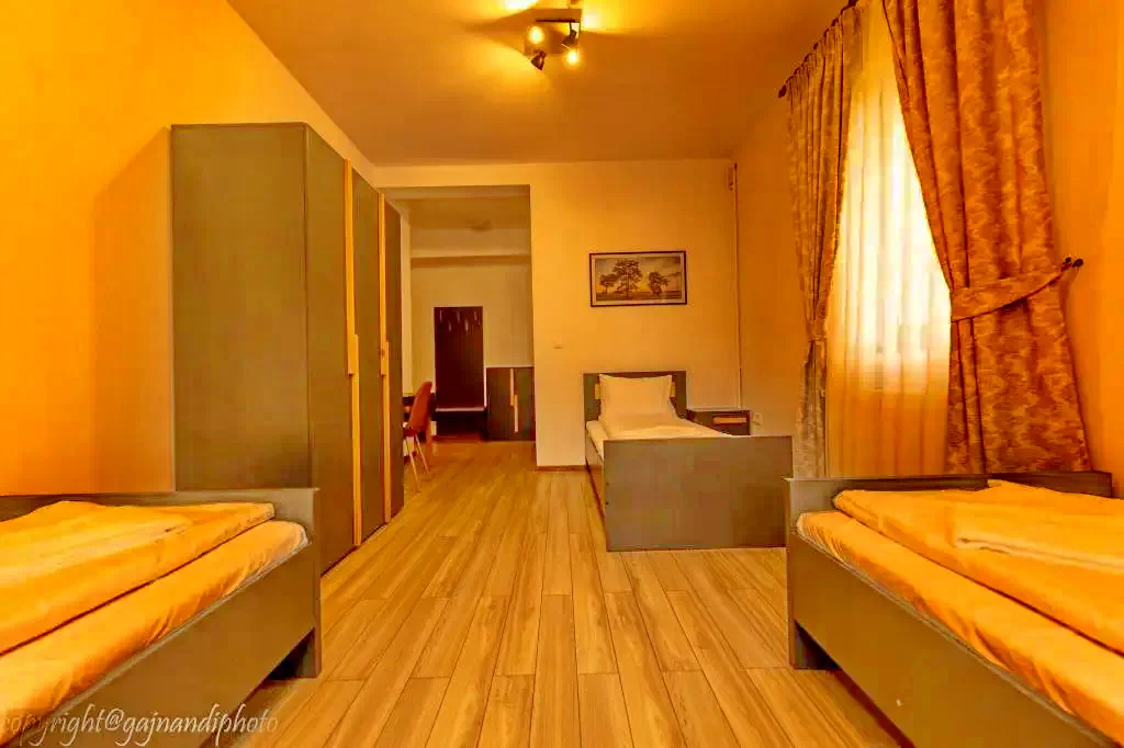 - Camerele sunt dispuse la parter și la etaj, toate fiind dotate cu baie privată, dulap, birou, prosoape, lenjerie, Wi-Fi și detector electronic de fum.