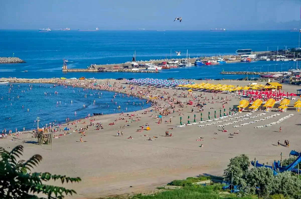 In zona Obeliscului, plaja este mai lata, însa foarte aglomerata pe timpul verii.