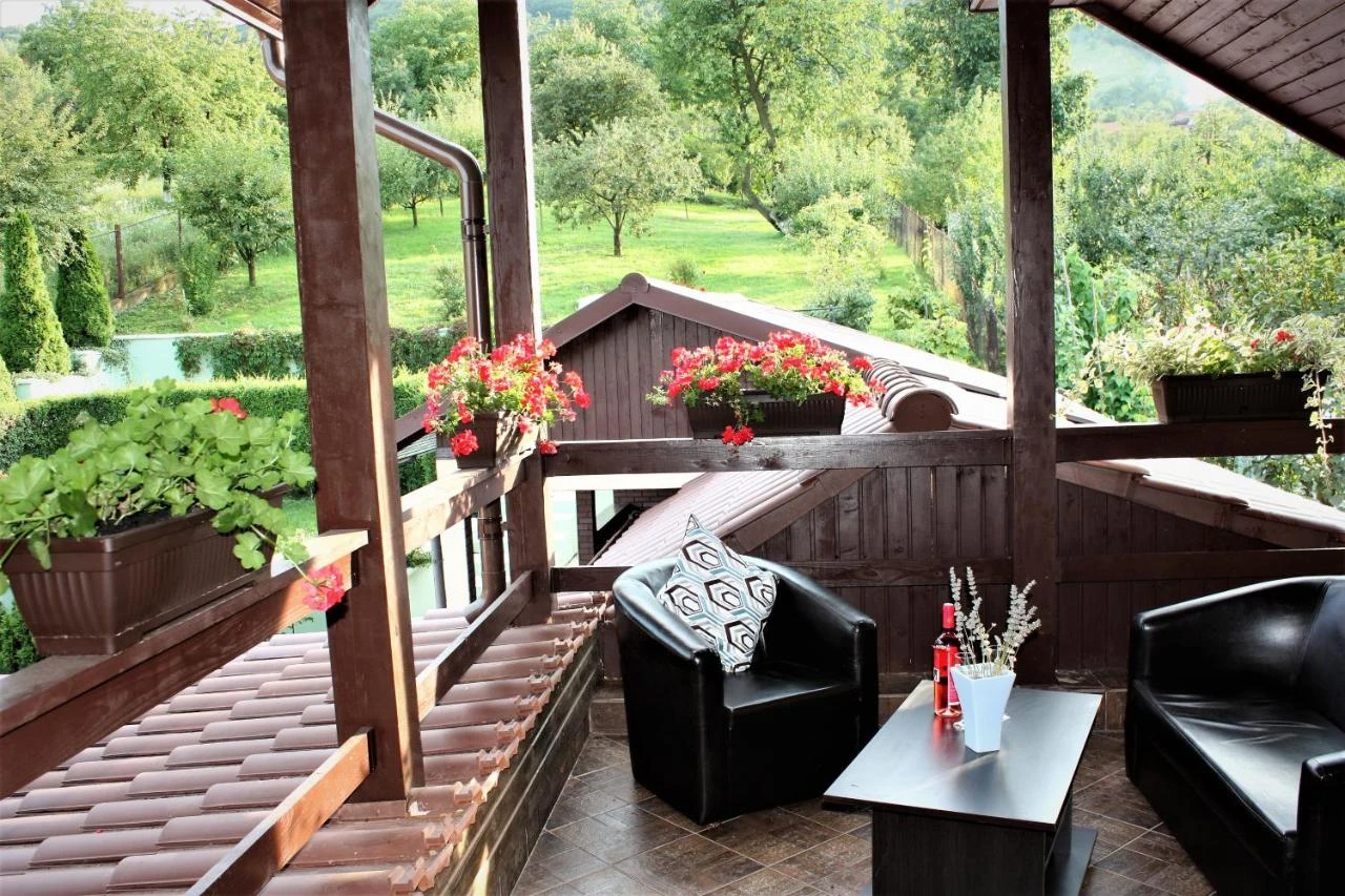 - Oaspeții pensiunii se pot relaxa în grădina îngrijită, unde se găsesc plante ornamentale, pomi fructiferi, un balansoar, bănci și o terasă acoperită (filigoră).