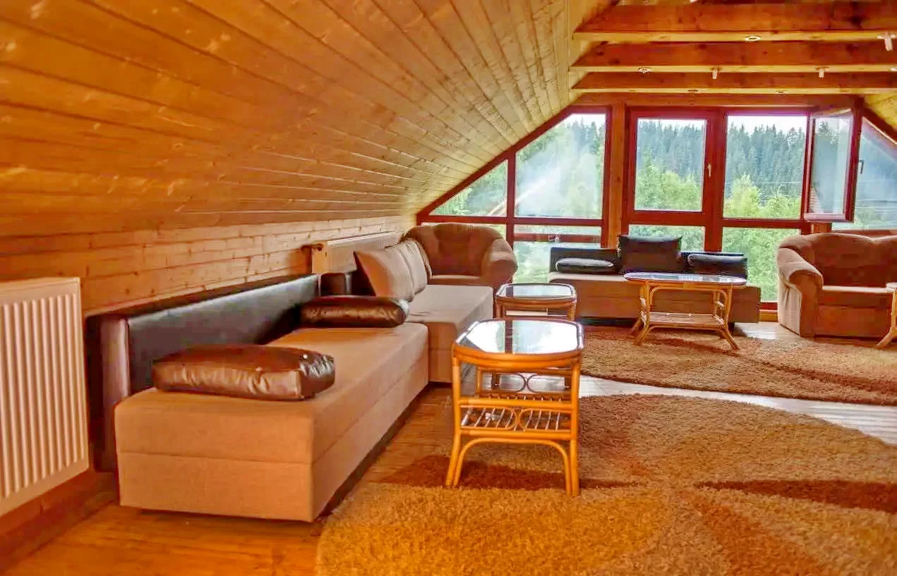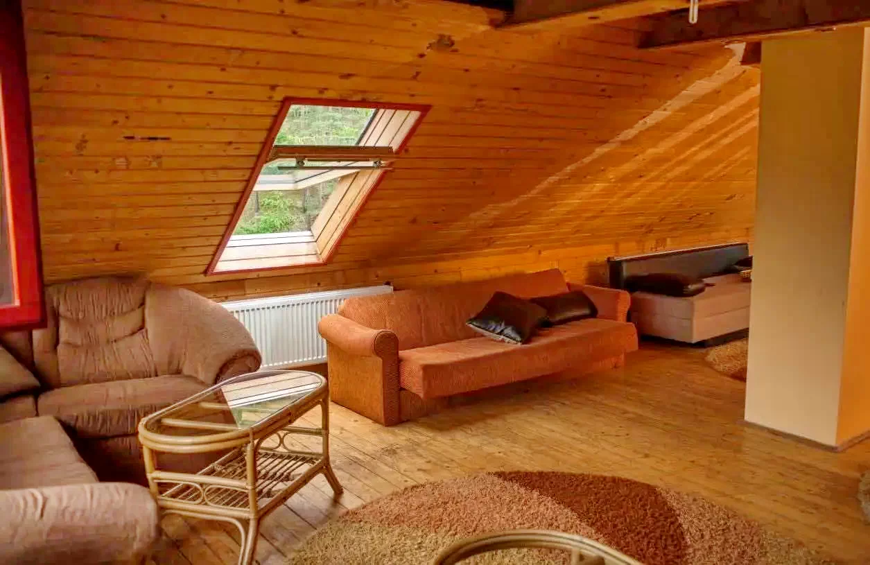 - Living la mansardă: Suprafață de 80 m² (6 canapele extensibile, pentru 12 persoane)
