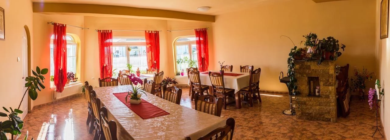 Cazare Gheorgheni Pensiune*** | Sala de mese - living, WIFI, colț de bucătărie, grădina-curte, foișor, cuptor, grătar, loc de joaca pentru copii, parcare | 13km pârtia de schi Ciumani, 26km Lacul Roșu, 29km Cheile Bicazului
