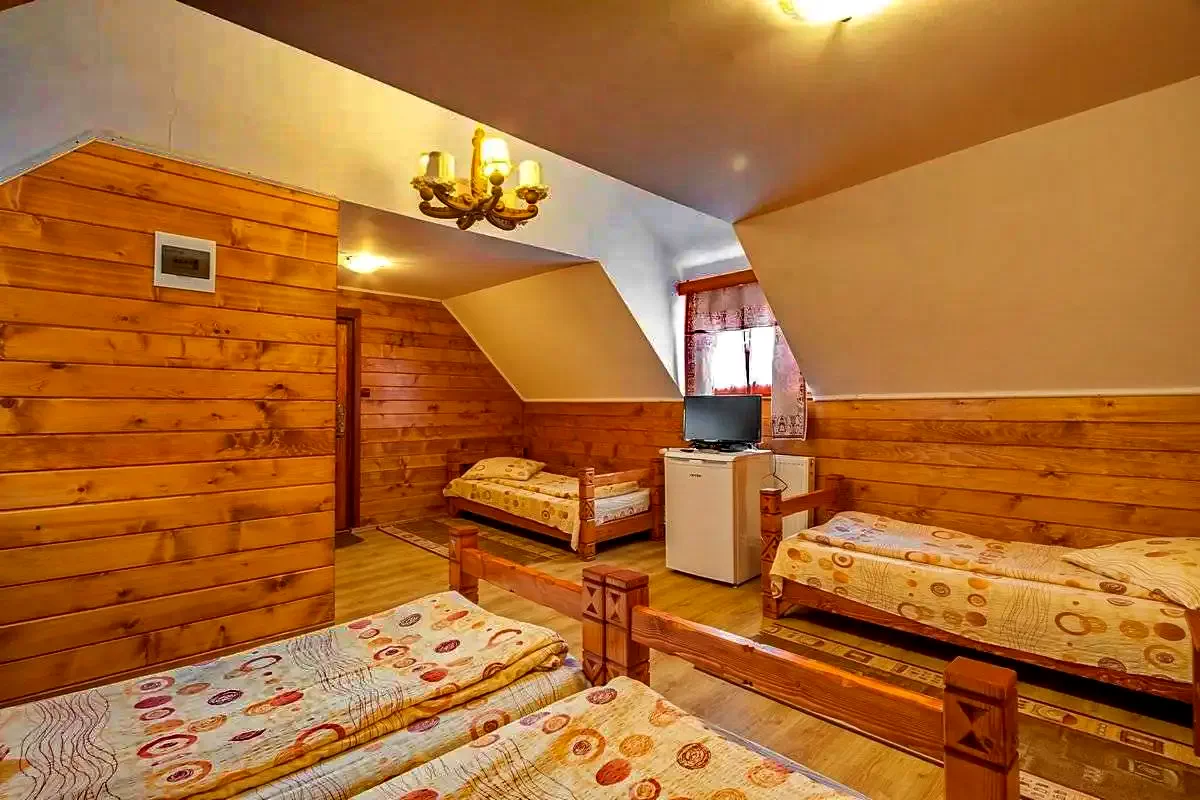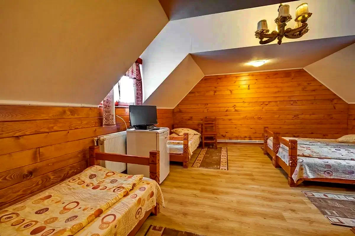 Camera cu 6 paturi este ideal familiilor mari, sau pentru cercuri de prieteni, care în timpul unei vacanţe mai scurte sau mai lungi, nu doresc să se desparte nici noaptea.