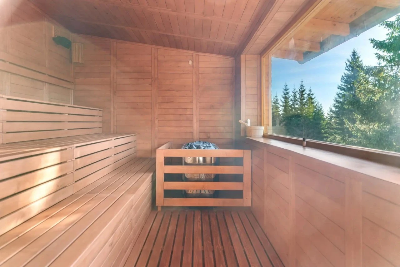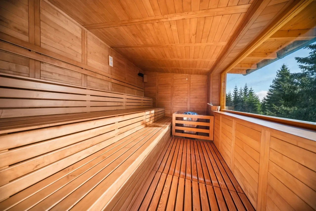 • zona de saune: 1 baie de aburi, 1 sauna infrarosu, 2 saune finlandeze si o sauna panoramica pe terasa, unde oaspetii se pot bucura de frumusetea naturii in timpul relaxarii