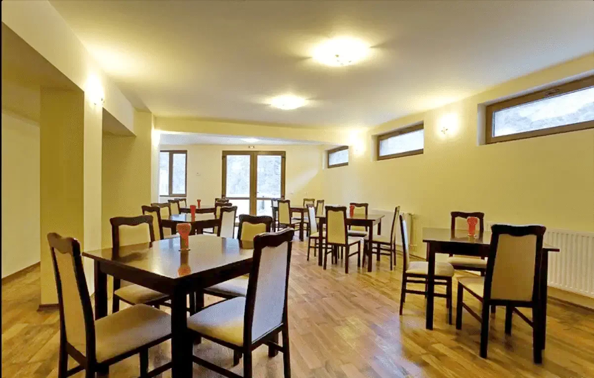 Clădirea cu patru etaje, asigură cazare exigentă pentru 38 de persoane. Camerele au baie cu duș, toaletă, TV digital, internet gratuit (WiFi) și încălzire centrală.