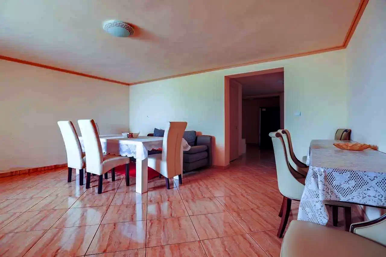 - Unul dintre apartamente are 5 locuri, iar celălalt 4 locuri. Apartamentele au 2 camere, baie proprie și pot fi dotate cu paturi suplimentare, la cerere.
