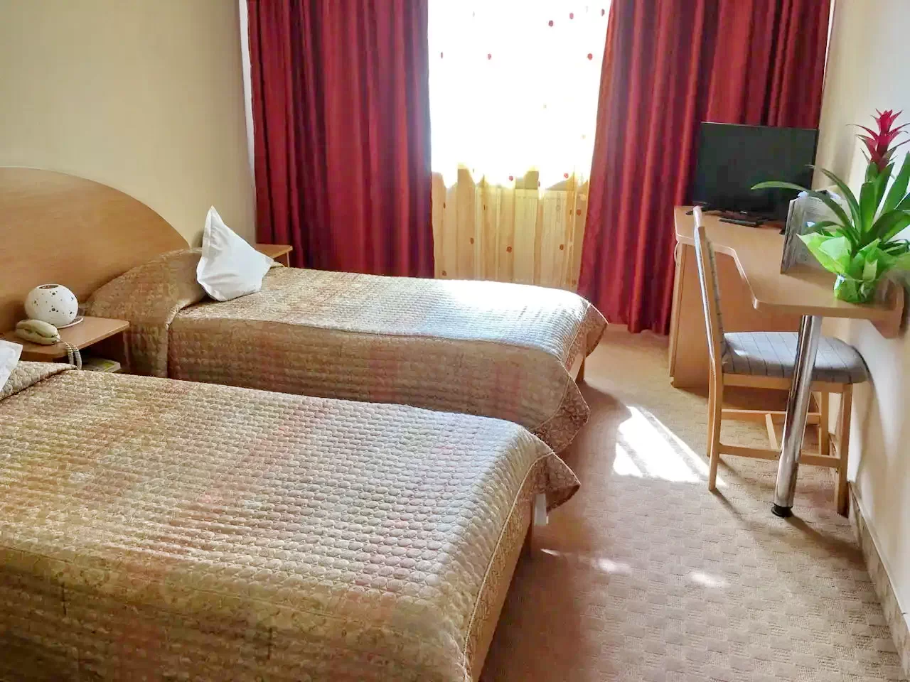 | Cameră twin | 2 pers. | 310 RON | 20 m², 2 paturi de o persoană, aer condiționat, baie privată, TV cu ecran plat, Wi-Fi gratuit, birou, uscător de păr, încălzire, parcare |