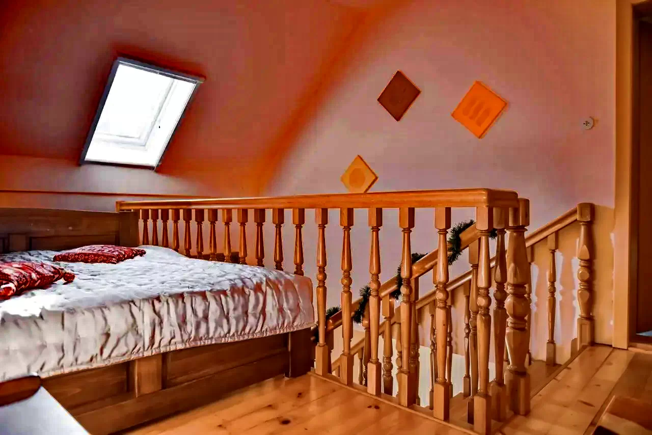 - La etaj, șase camere separate oferă odihnă pentru 24 de persoane.