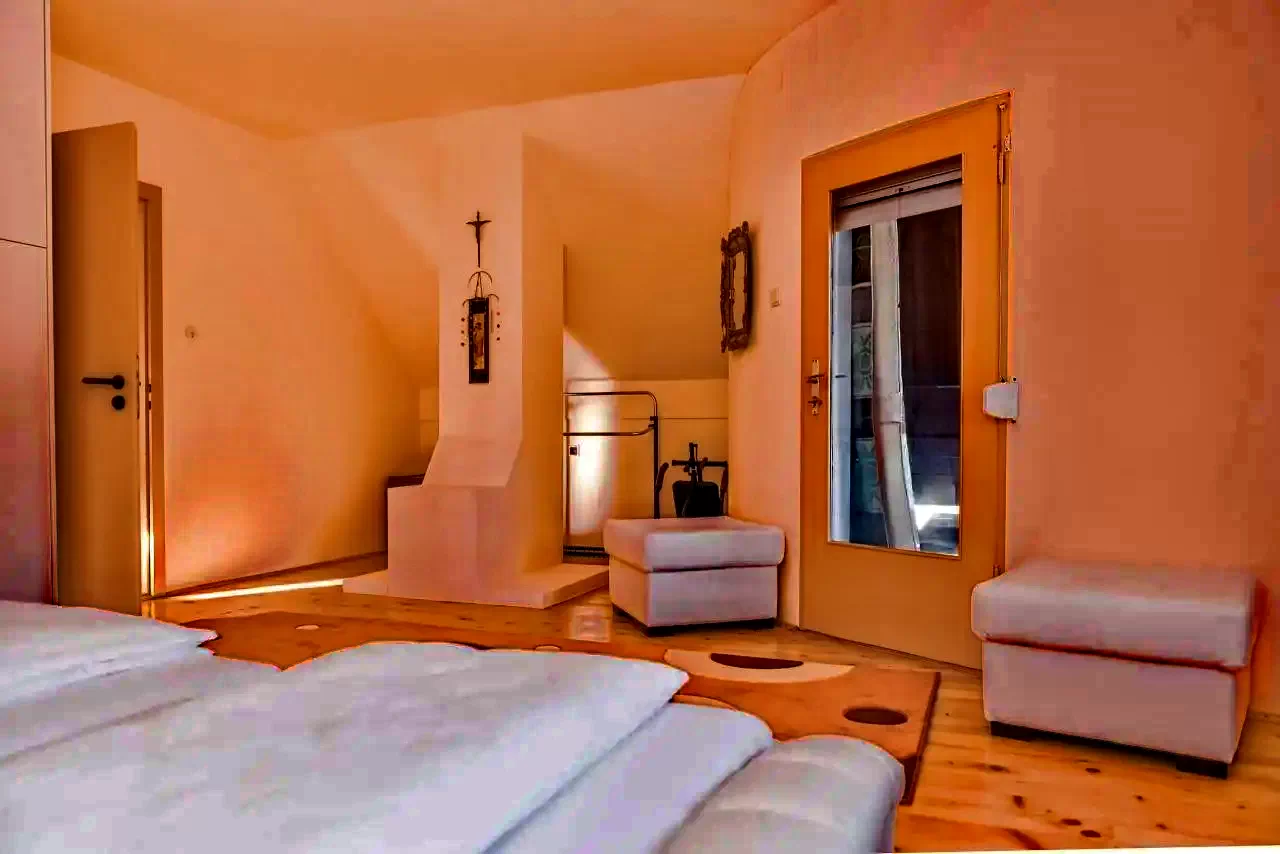Camera 6: 4 paturi single + 1 pat matrimonial (6 persoane) Notă: Paturile single nu pot fi unite. Lenjeria de pat de calitate și cele patru băi cu duș garantează confortul oaspeților.