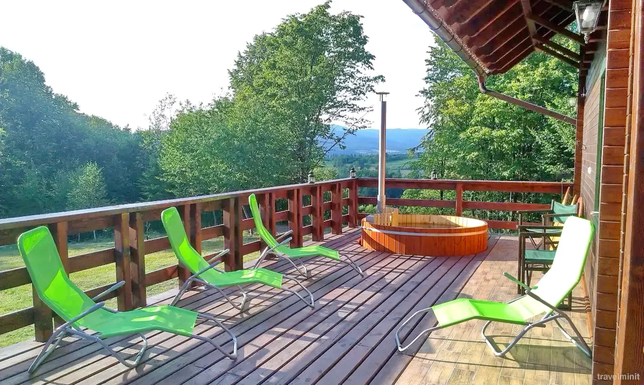 • Cu ciubărul „Jacuzzi Secuiesc” și sauna pentru relaxare, curtea spațioasă și activitățile variate – de la drumeții pe Harghita-Mădăraș (11 km) la plimbări pe Lacul Zetea (8 km) sau schi (11 km) – această cabană garantează o vacanță de neuitat.