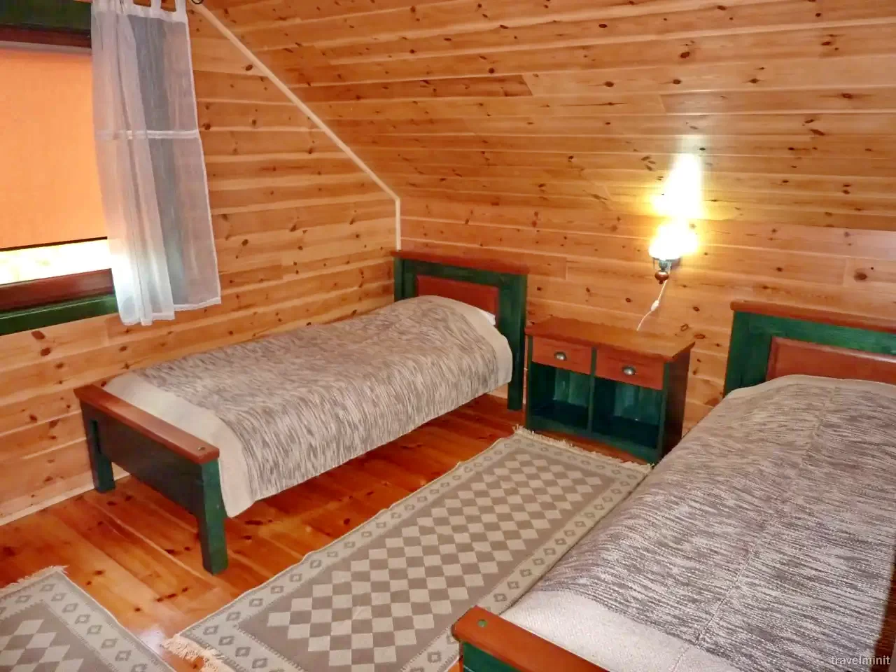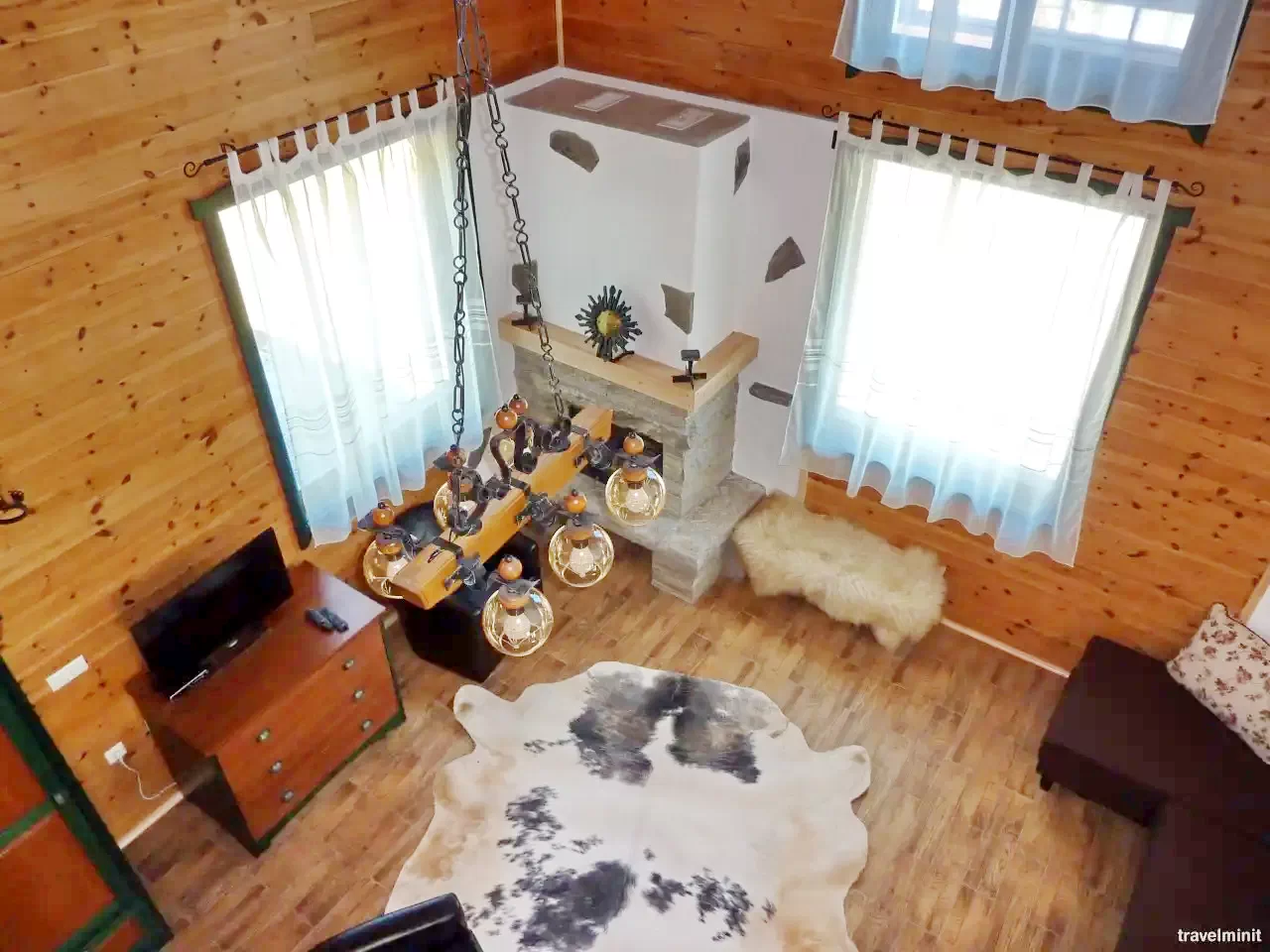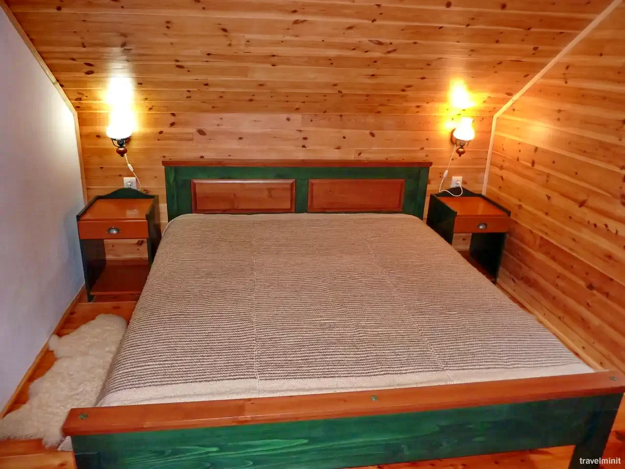 Cabana, cu o suprafață de 14 x 12 m, este o construcție modernă, dispusă pe un etaj, care poate găzdui până la 12 persoane.