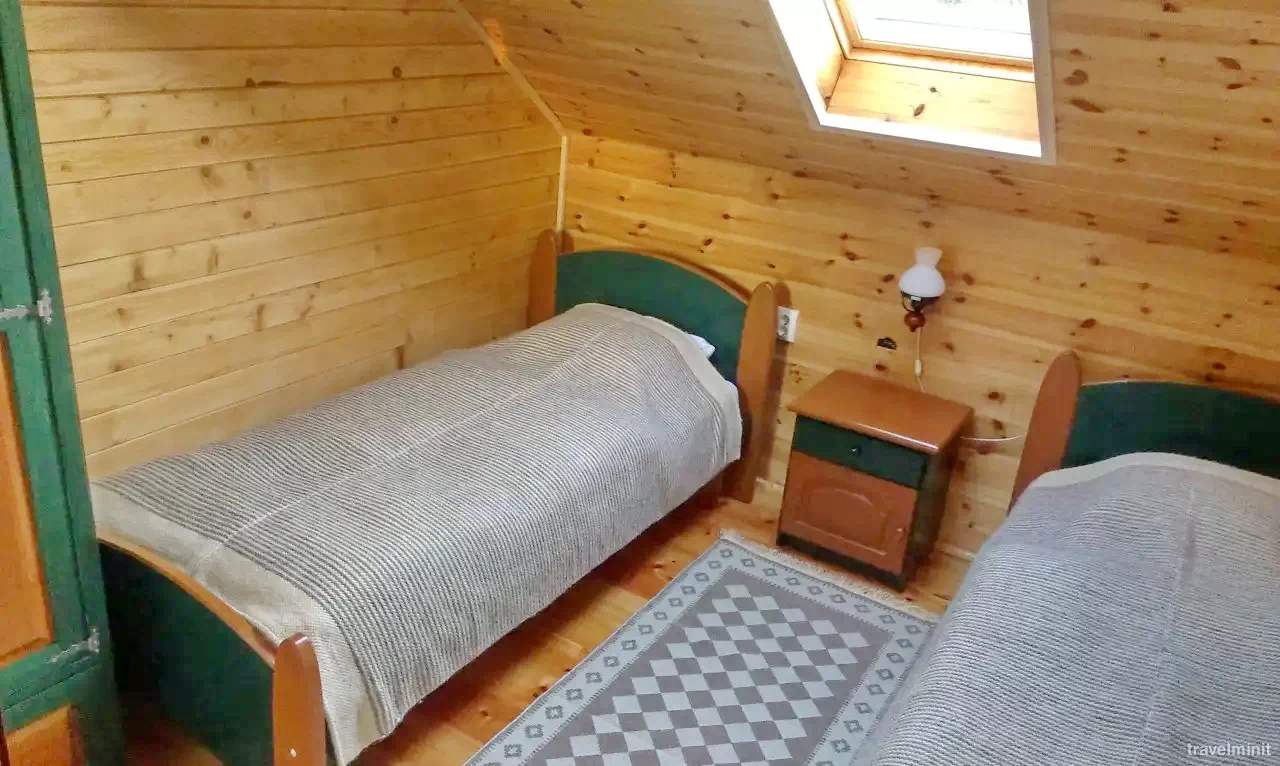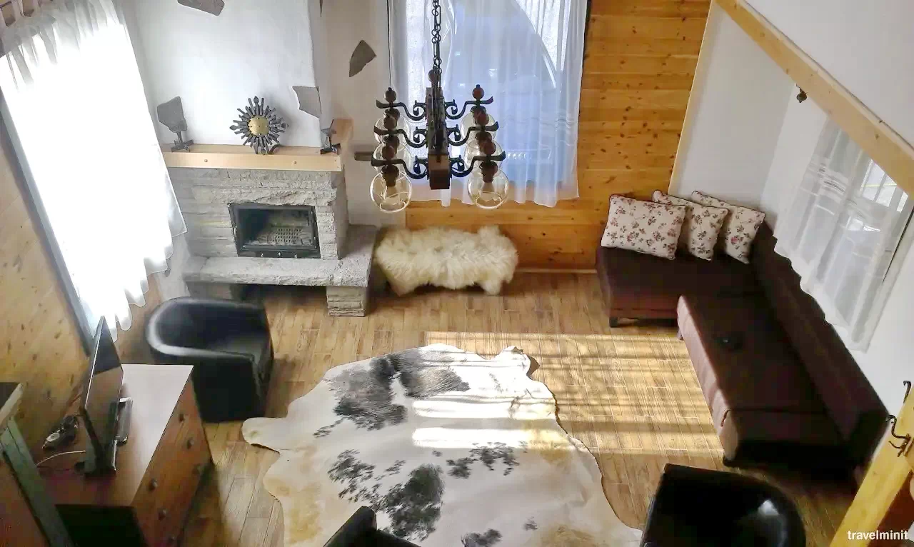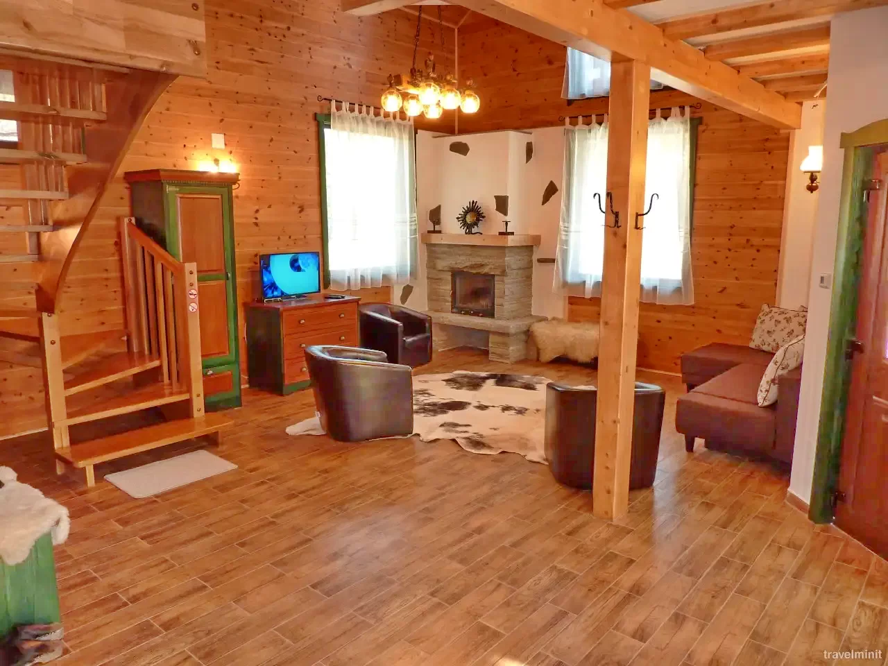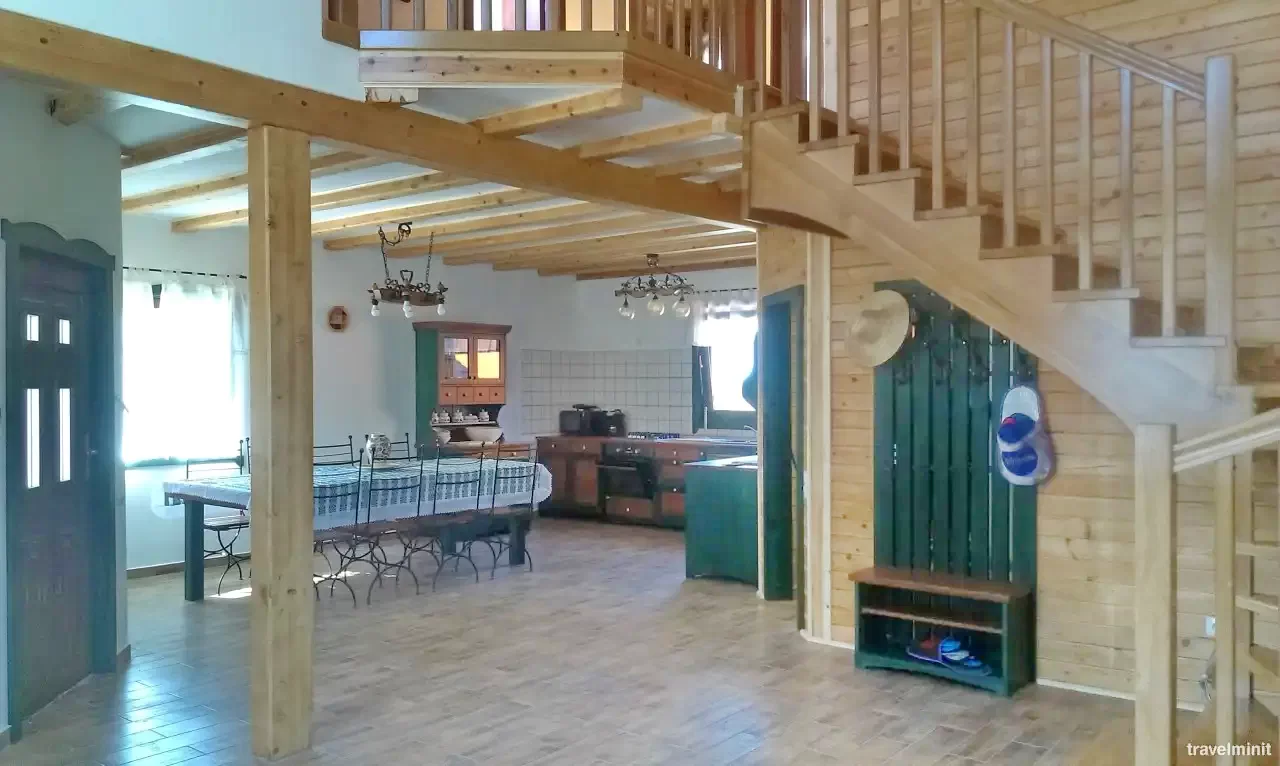 Cabana, cu o suprafață de 14 x 12 m, este o construcție modernă, dispusă pe un etaj, care poate găzdui până la 12 persoane.