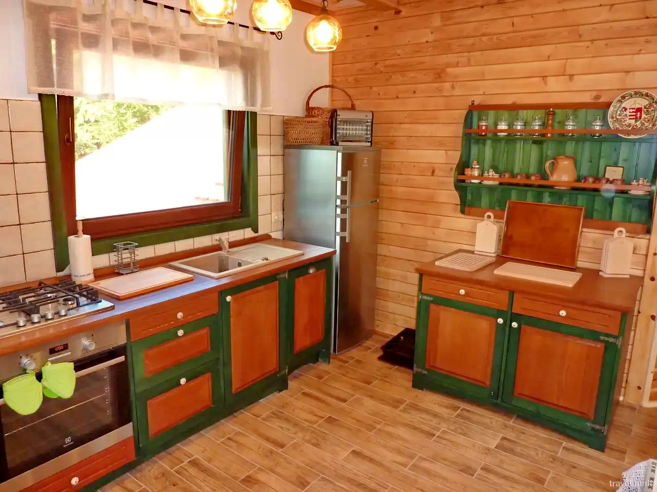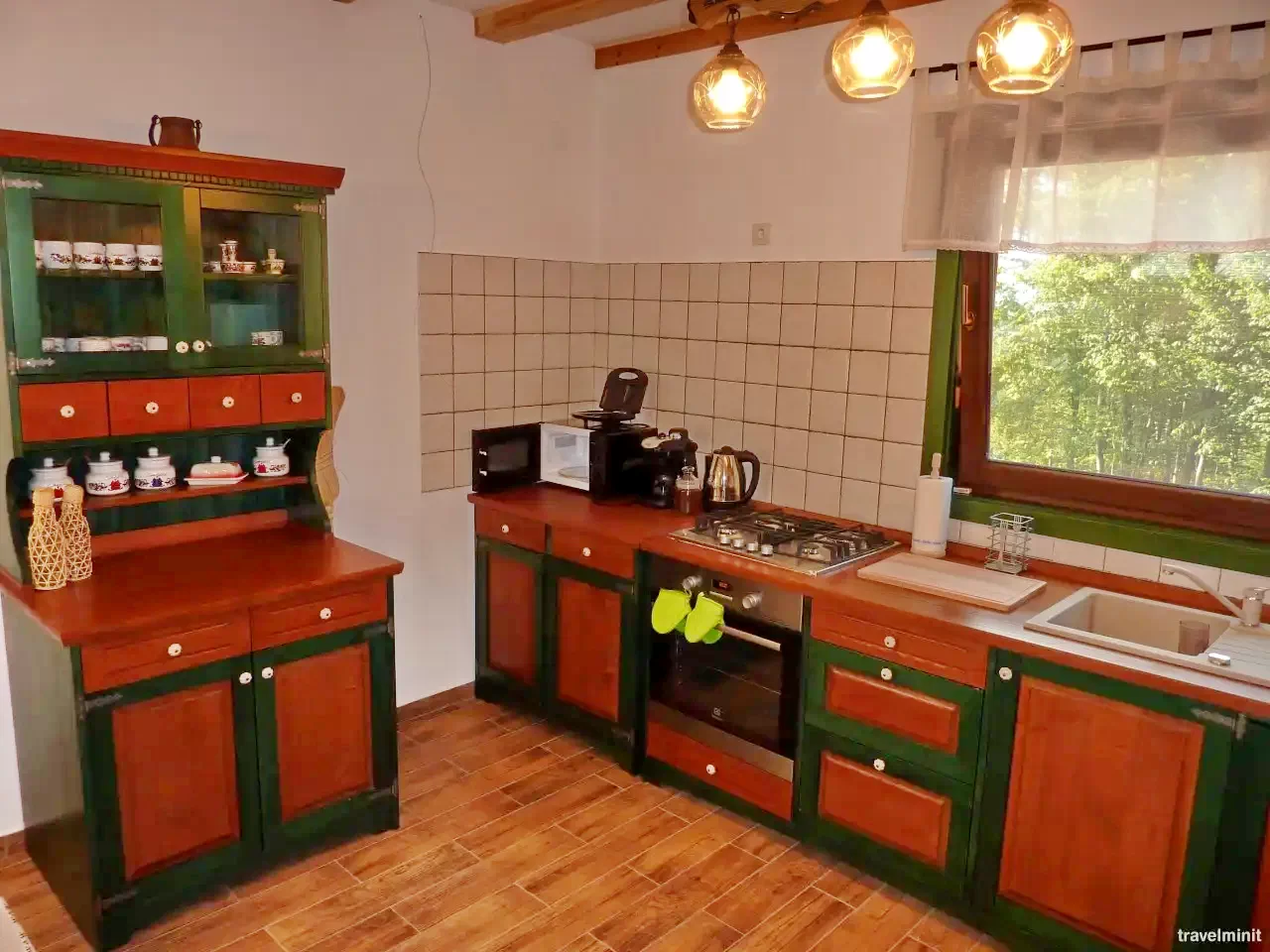 Bucătăria modernă a cabanei este perfect echipată pentru auto-gospodărire, incluzând: