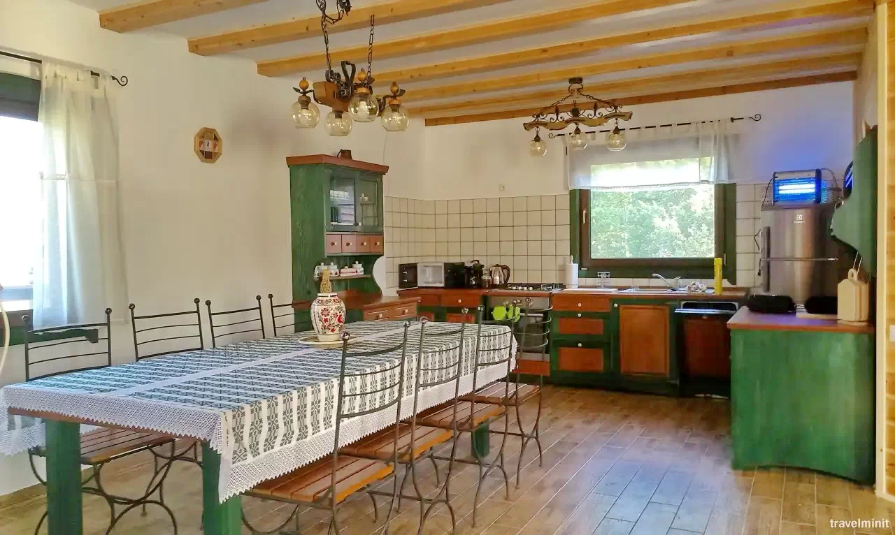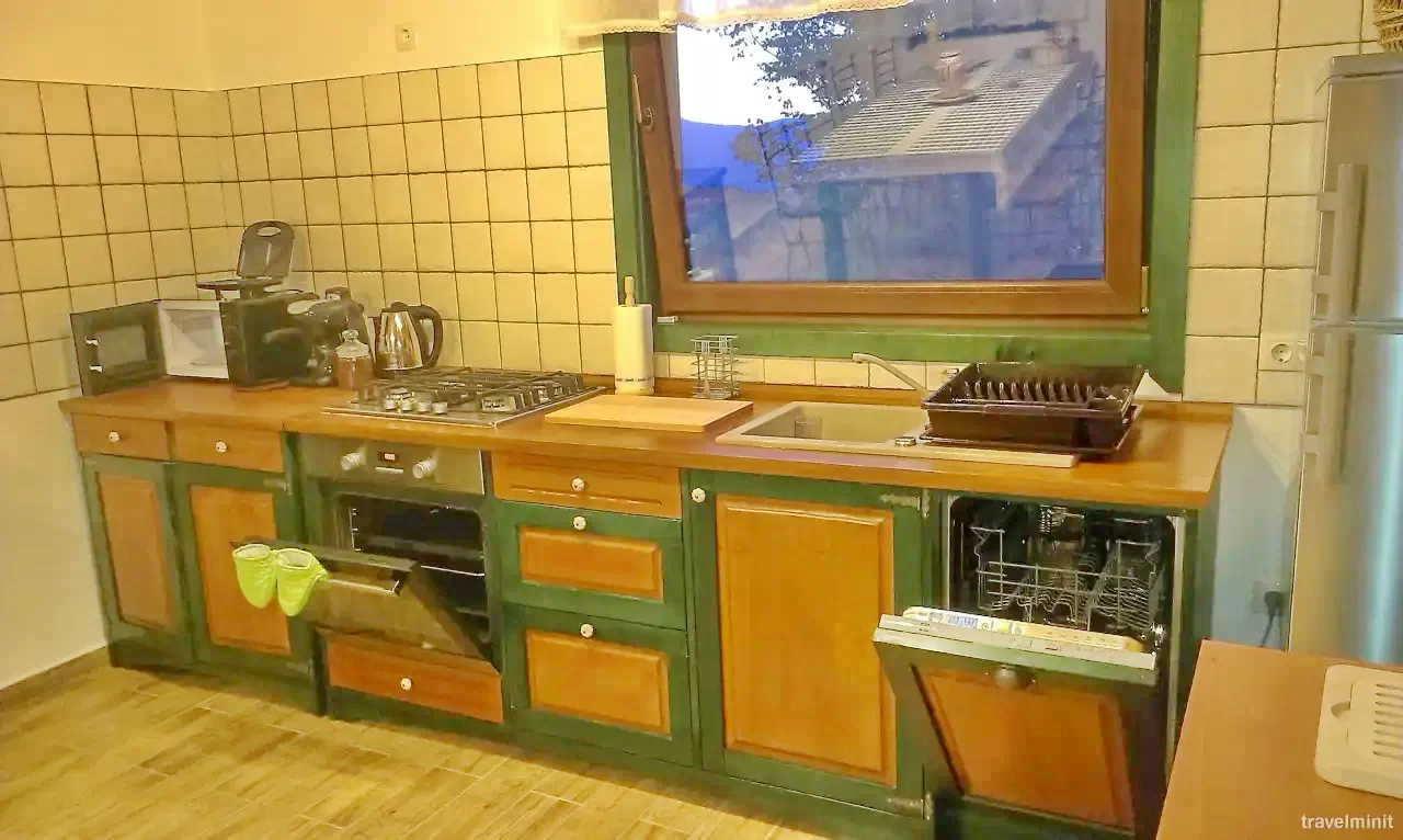 • Aragaz pe gaz și electric, mașină de spălat vase, frigider, cuptor cu microunde, prăjitor de pâine, filtru de cafea, ceainic, vase și tacâmuri.