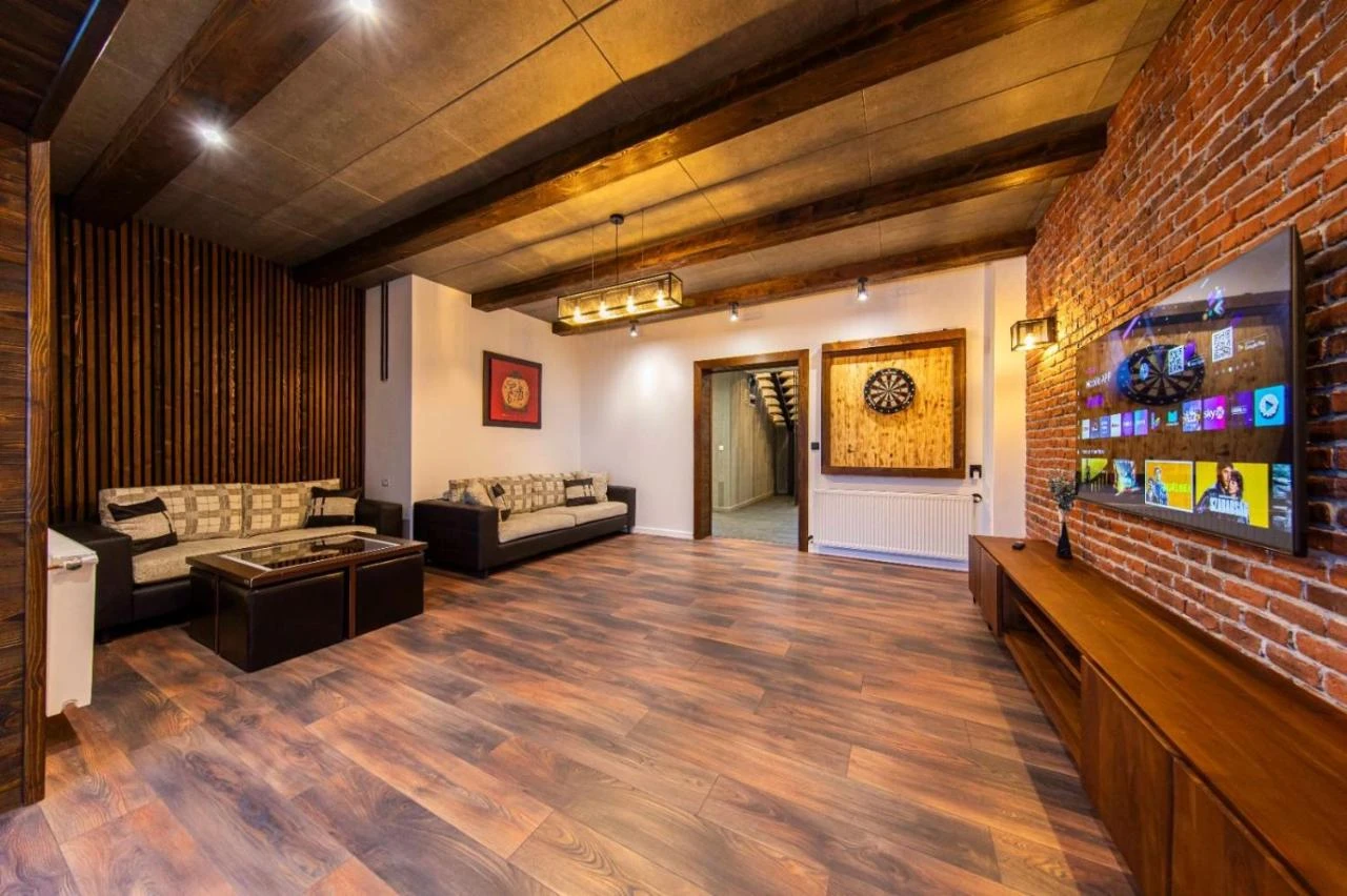 - Vila este o clădire independentă cu o suprafață de 350 m², care dispune de bucătărie proprie, băi și un living spațios.