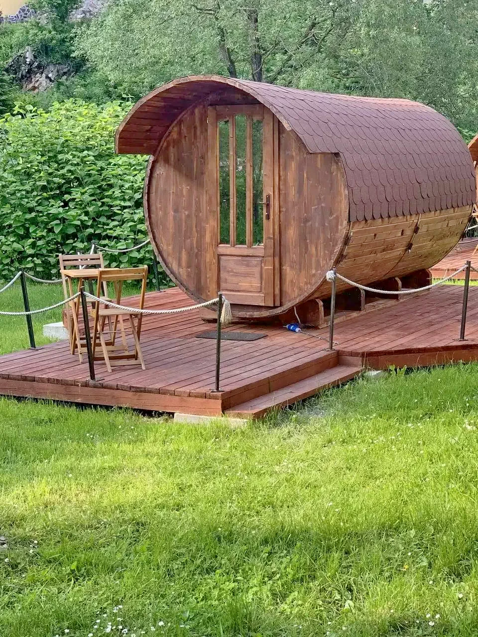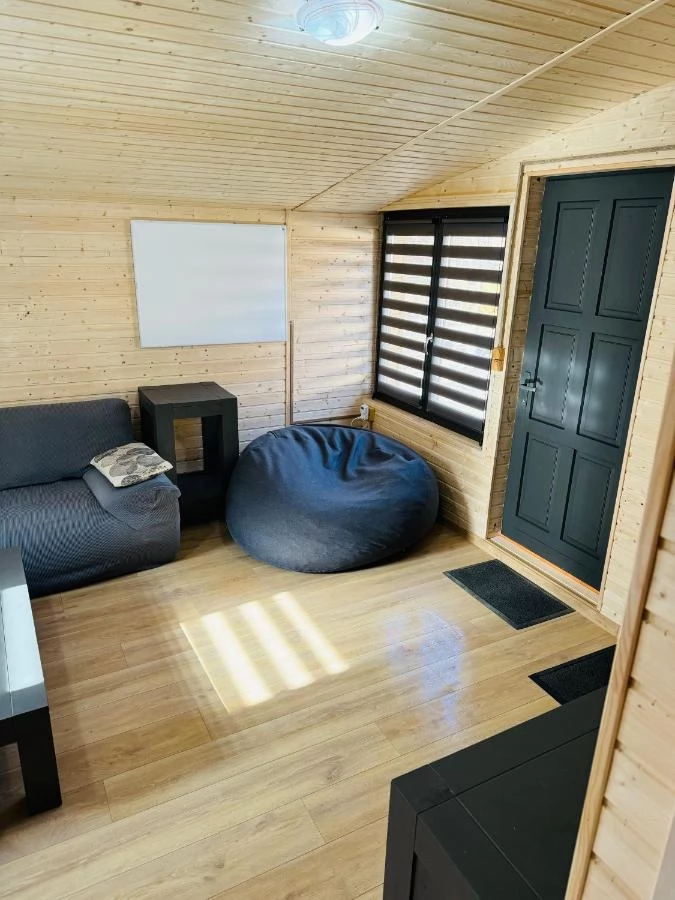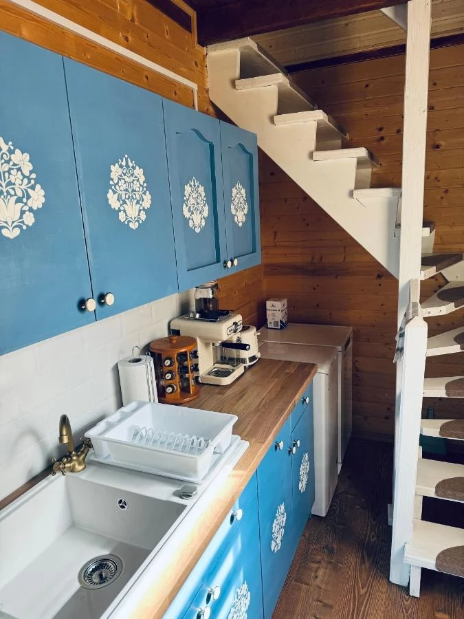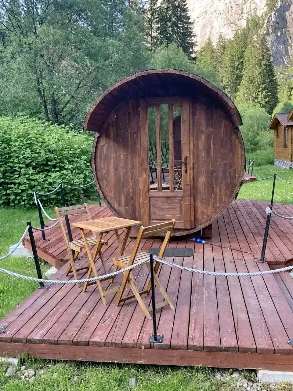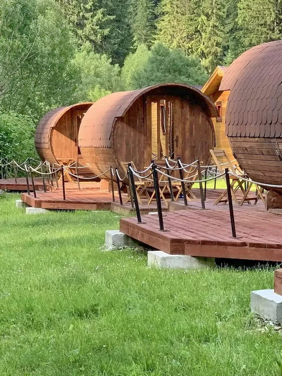 - Bucătărie: Bucătărie comună echipată pentru utilizarea oaspeților caselor butoi.