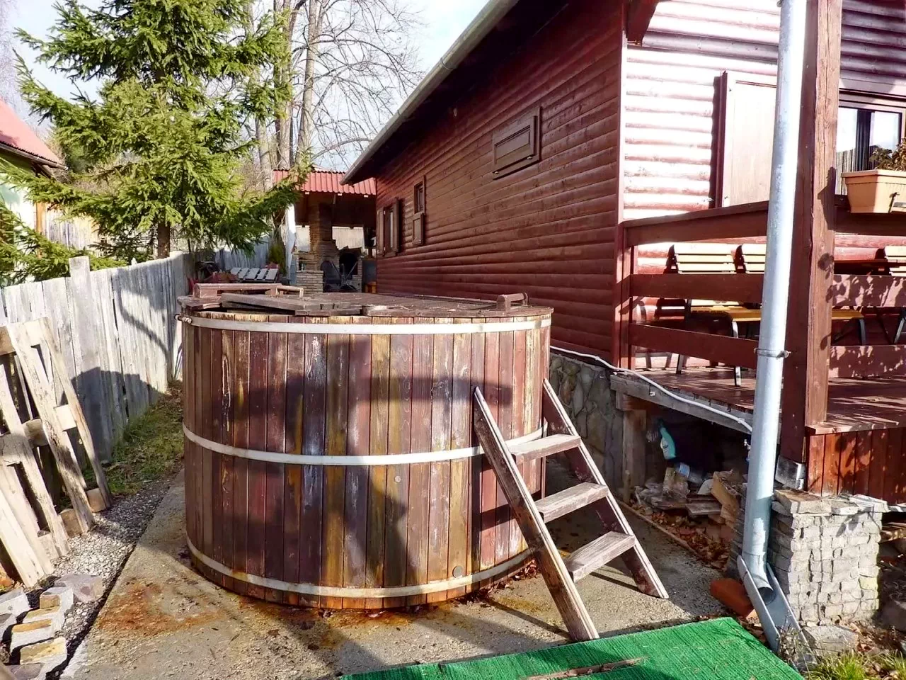 Cabana din Liban este un adevărat paradis pentru relaxare, oferind un ciubăr secuiesc încălzit (2 metri diametru, 3500 litri, 6-8 persoane), disponibil în orice anotimp.