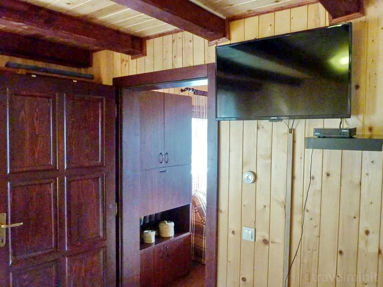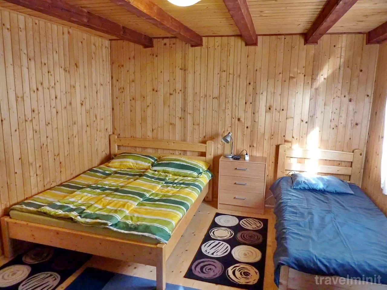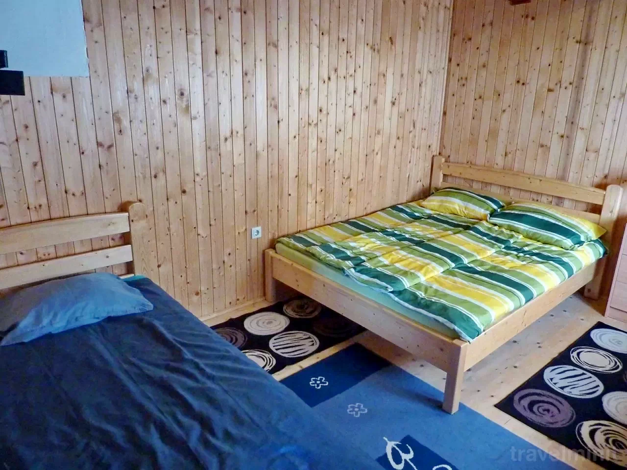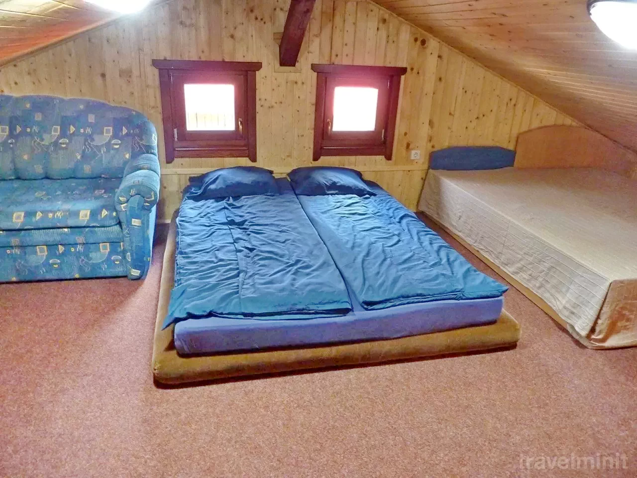 Prima cameră: 1 pat dublu (2 persoane), 2 paturi single (2 persoane)