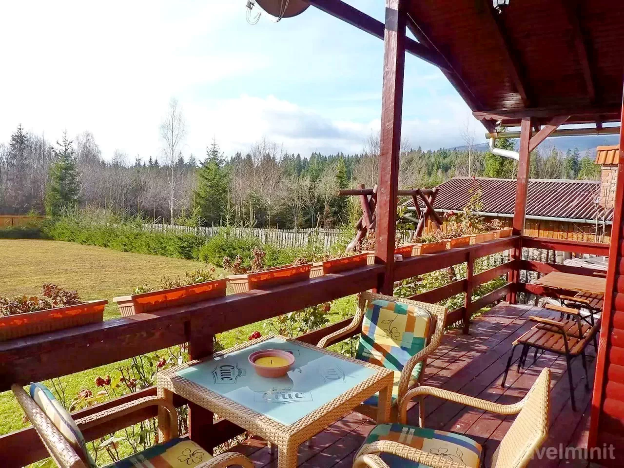 Foișor acoperit și terasă: Pentru relaxare și mese.