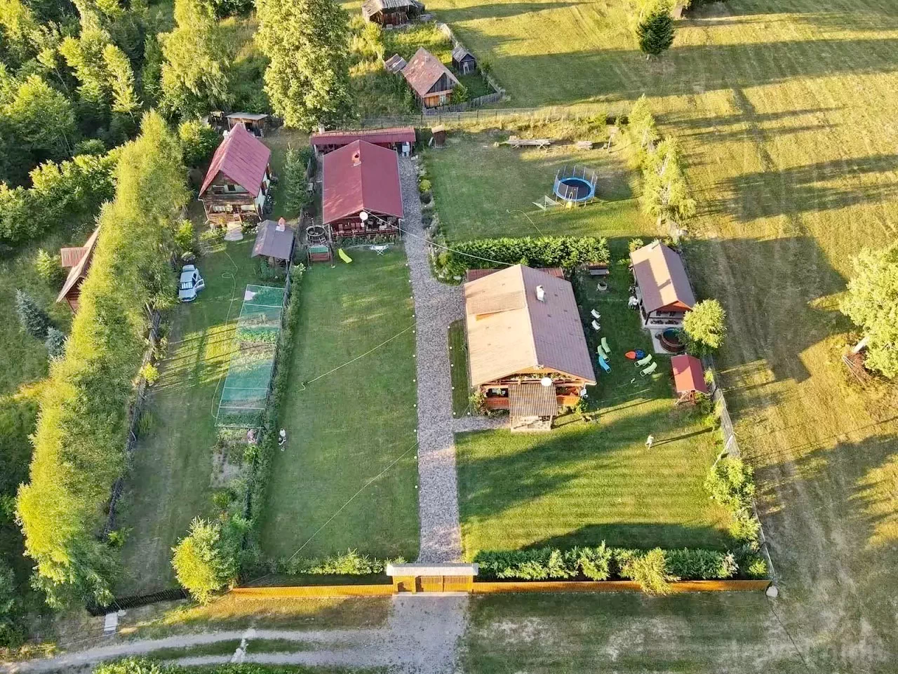 - Curtea de 700 m² include foișor acoperit, terasă, șezlonguri, leagăn, coș de baschet și teren de volei, asigurând distracție pentru toate vârstele.