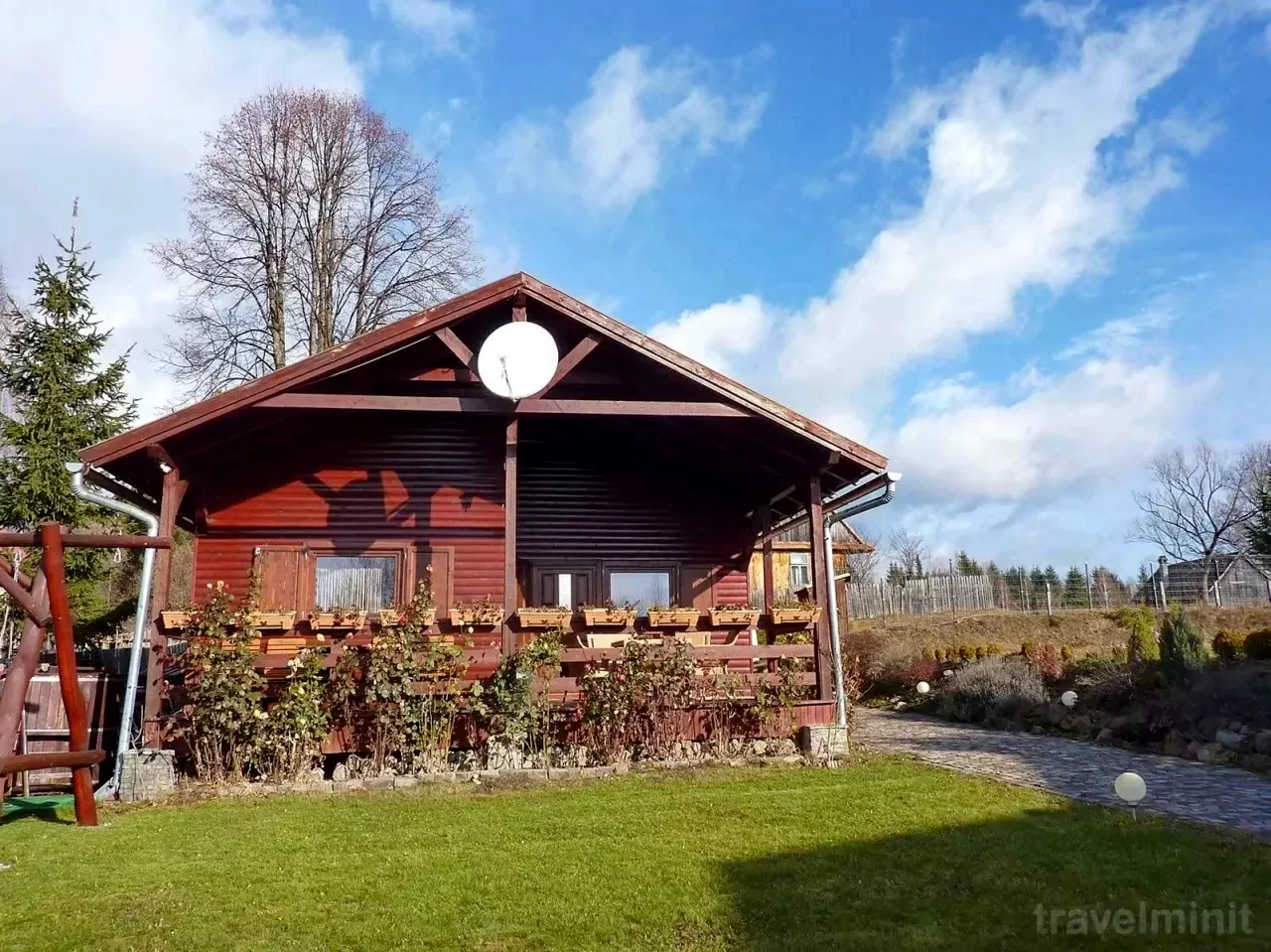 - Amplasată pe un teren de 700 m², cabana oferă un mediu liniștit, aproape de natură, la doar 450 metri de drumul asfaltat.