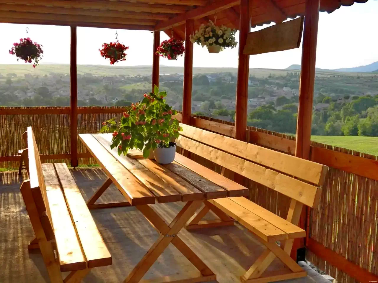 - Foișor și zonă de relaxare în grădină, unde oaspeții pot savura liniștea și frumusețea naturii