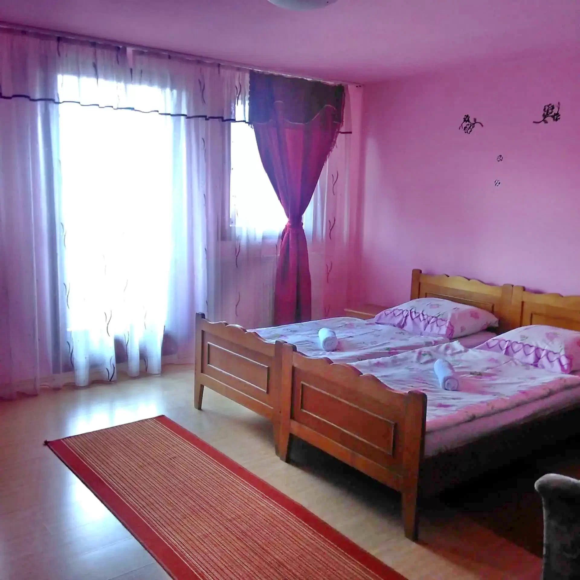 - 2 camere duble twin, fiecare având baie proprie și dotări pentru confortul oaspeților.